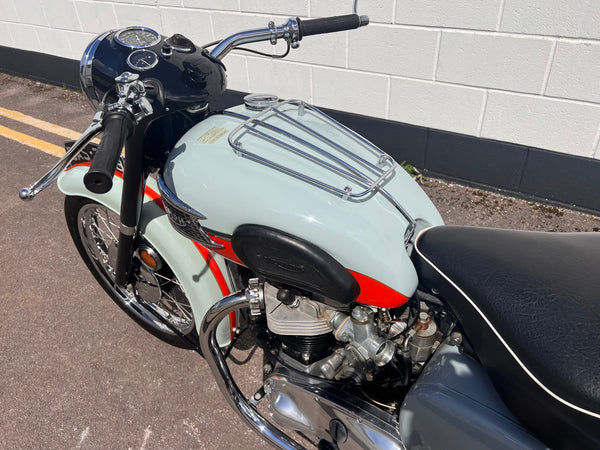Triumph T120 Tangerine Dream 650cc 1959. In excellent condition having been fully restored in 2013 by Magpie of Coventry. Only 233 miles on the clock with matching engine and frame numbers. Stars runs and rides very well. A very rare machine and this is a great example!