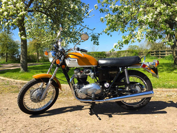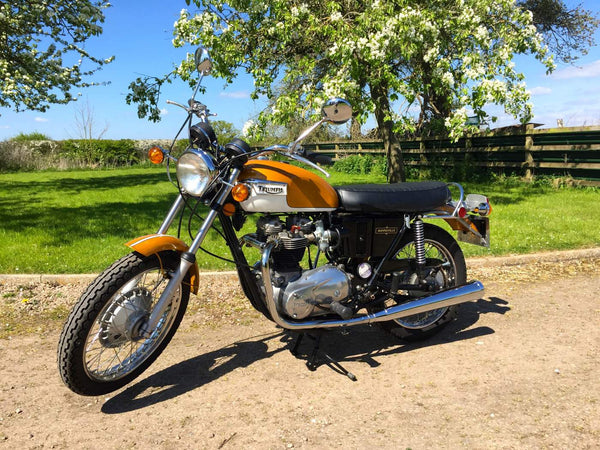 Triumph T120r Bonneville 1972 650cc, in Gold und Elfenbein. in voll restauriertem Zustand mit nur 1000 Meilen auf der Uhr seit der Restaurierung. Dies ist ein sehr nutzbarer Klassiker, der großartig läuft und reitet. Preisangebot!