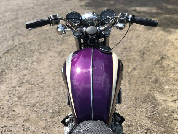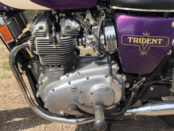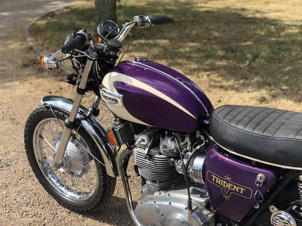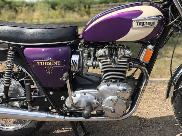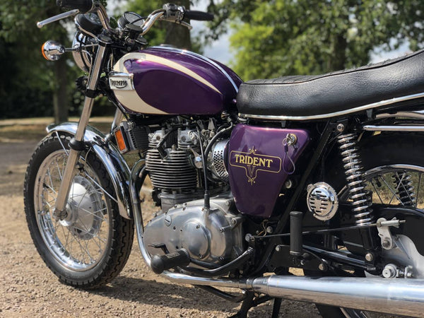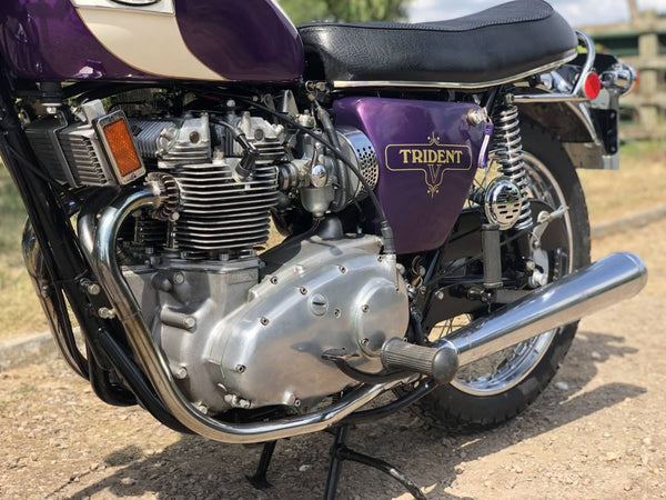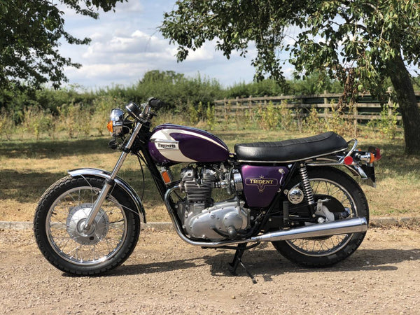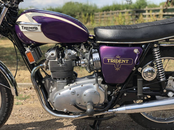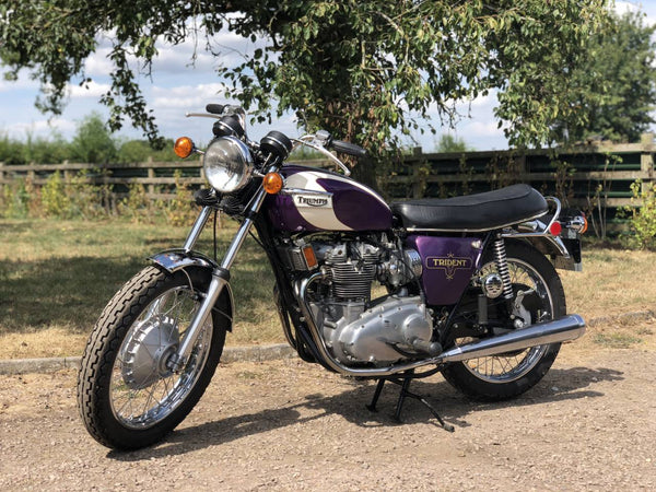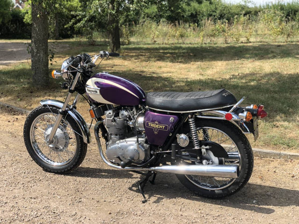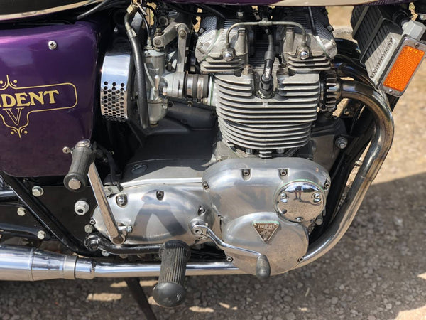 Triumphdreizack T150 1972. Ein hervorragendes Beispiel, das von einem sehr talentierten, erfahrenen und älteren Motorradingenieur vollständig restauriert wurde. Alle korrekten, originellen, passenden Zahlen; Startet First Prod of the Kick Start (der einen T160 mit E/S braucht, wenn es so einfach ist!) Flüsternde, Turbine wie Motor, eine absolute Freude zu hören, zu fahren und zu polieren! Tax & Mot befreit und billig klassisch, vereinbarte Wertversicherung. Das Seitenfeld braucht etwas Aufmerksamkeit.