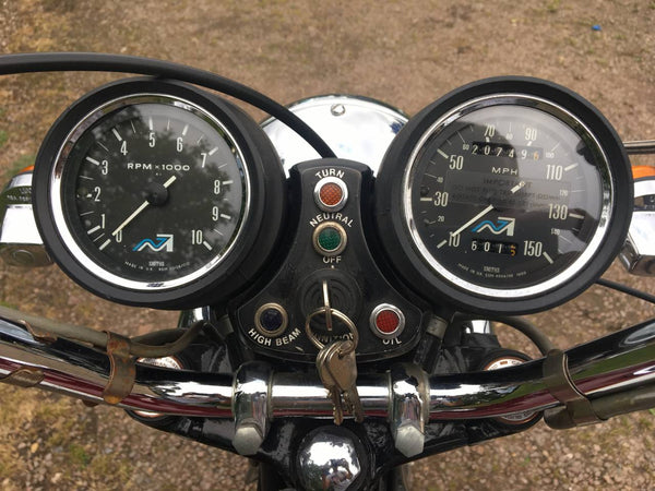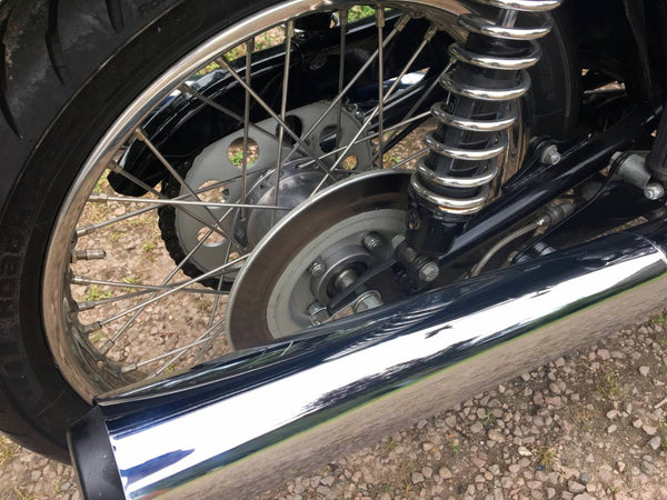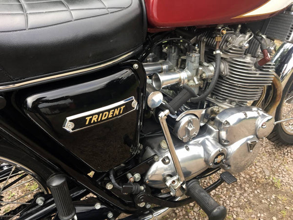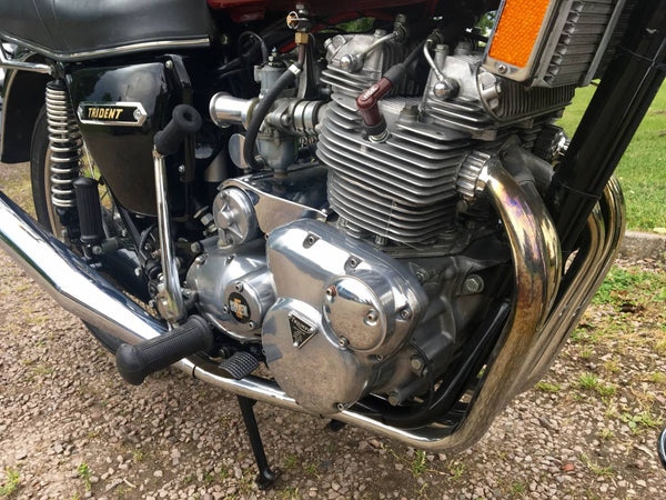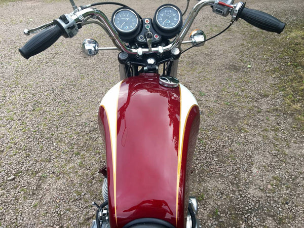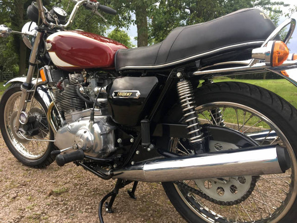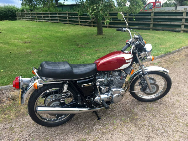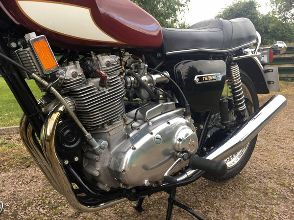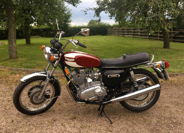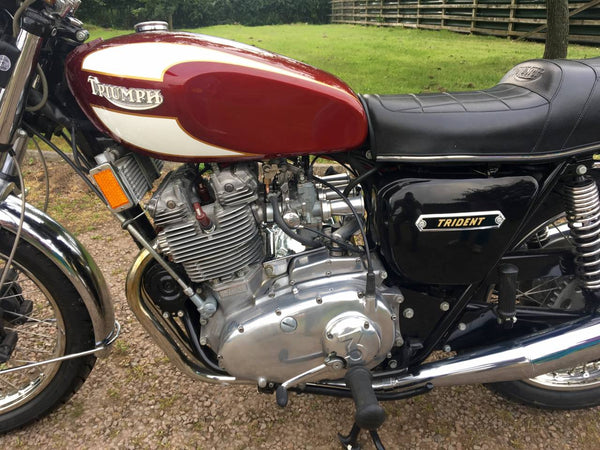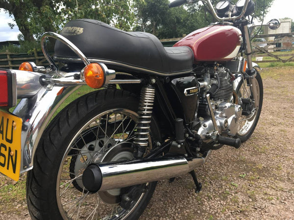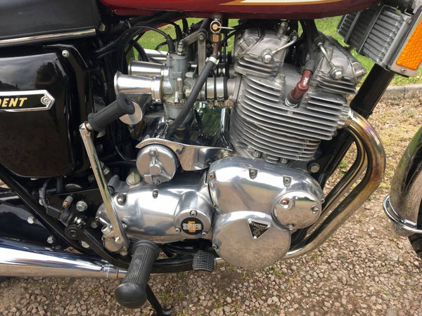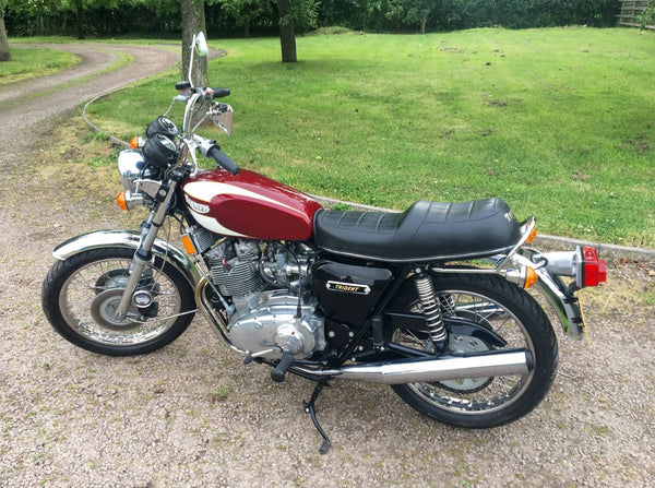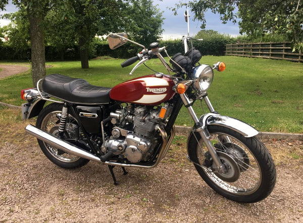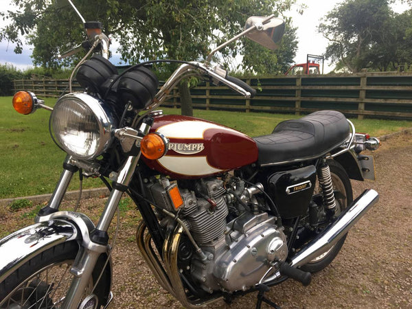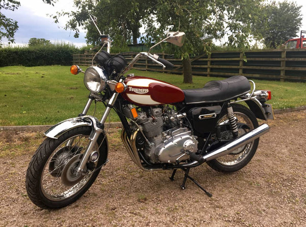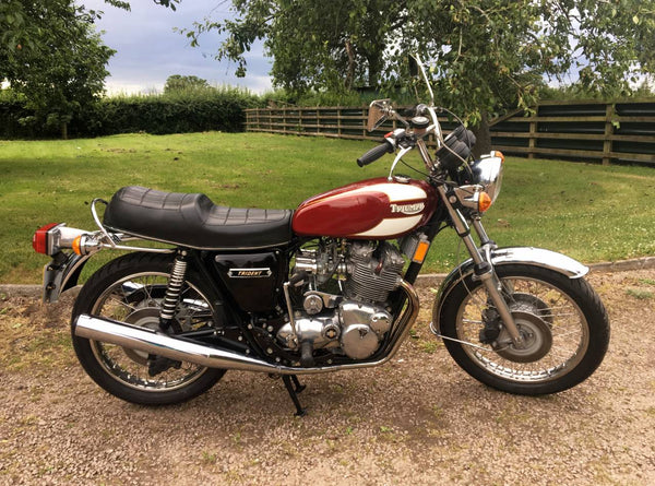 Triumphdreizack T160 1975. Voller Triumph -Triumph -Spezialist und in fantastischem Zustand, eines der besten. Die Restaurierung wurde dokumentiert. Hat Twin Disc Conversion, was wirklich ein Muss ist, um diese schnelle Maschine sicher zu stoppen. Passende Nummern, neue Mots, startet auf der Schaltfläche, läuft und fährt als neu. Hat seit der Restaurierung 3000 ungerade Meilen abgedeckt und mit SS -Felgen und Speichen ausgestattet, Hyde Fork Brace und ist Preisträgerin. Wir bezweifeln, dass es einen anderen gibt, der so gut ist wie dieser, der überall zum Verkauf steht. Eine tolle Maschine und ein Wertvermögen.