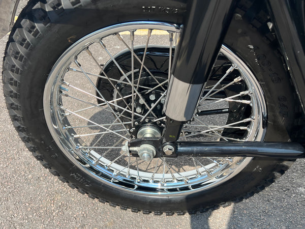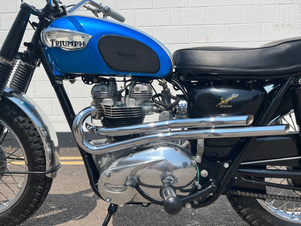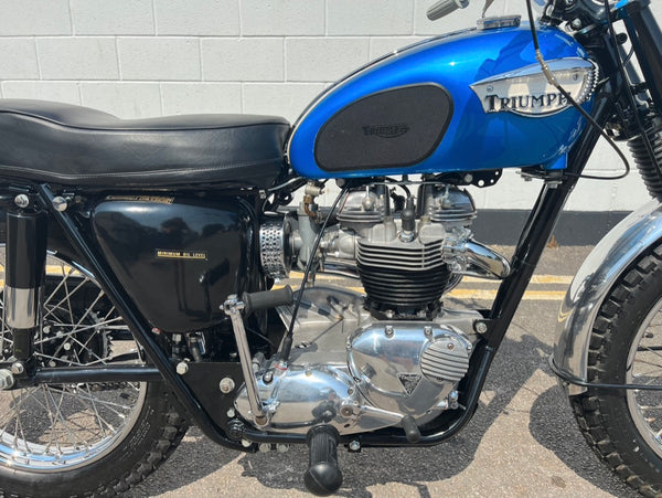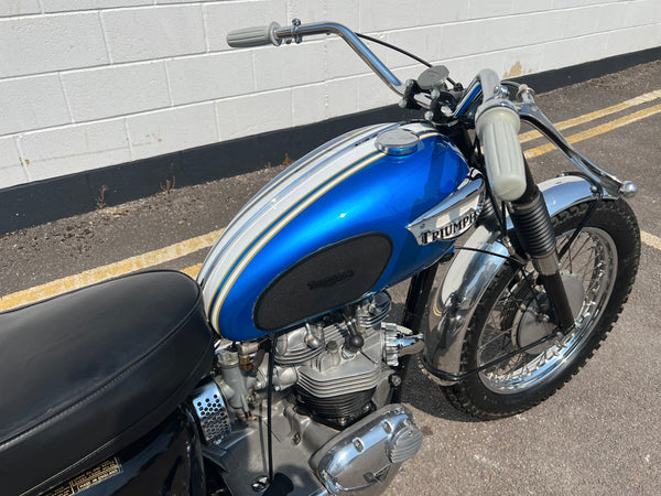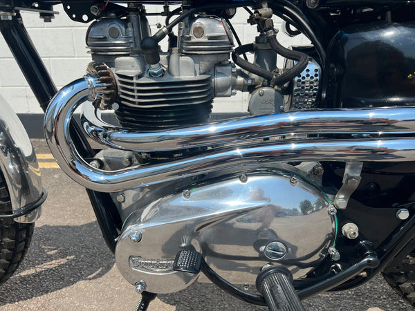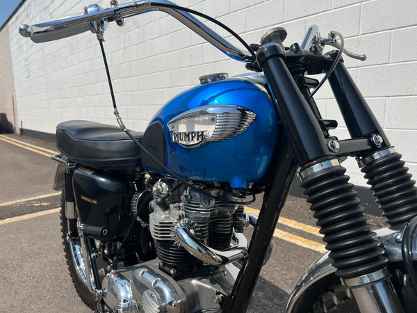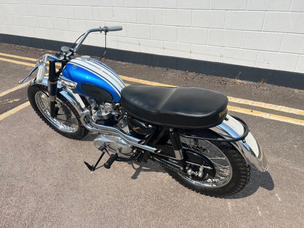 Produced only from 1964 to 1966, the TR6SC (Special Competition) was a special edition designed specifically for off-road competition in the deserts of the US West Coast. The ‘Desert Sled’, as it became known, was designed by US dealer, Johnson Motors, with high, straight-through exhaust pipes, no speedometer to complement the tachometer, no battery, off-road tyres and higher gearing to facilitate high-speed power sliding. The frame downtube behind the carburettor was modified with a tube through it to the air filter placed inside the box behind the frame downtube.