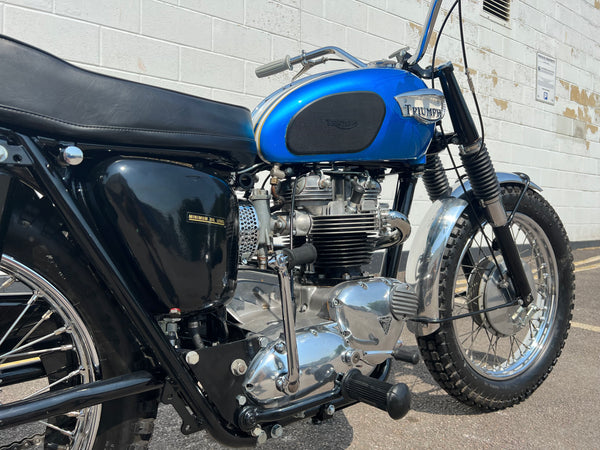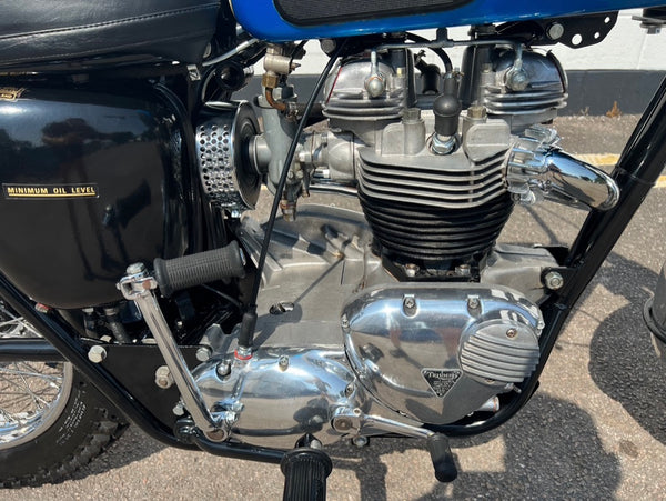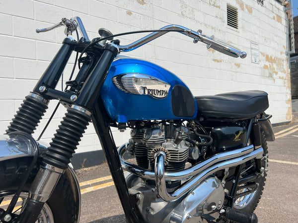 Triumph TR6SC Desert Sled 650cc 1965. Matching engine and frame number's as confirmed by the VMCC certificate. Despatched to JoMo California on the 29th October 1965. The bikes has just under gone a comprehensive restoration with lots of bill providing work carried out. Still retaining original rims. Will need a running in period. Ride or show!