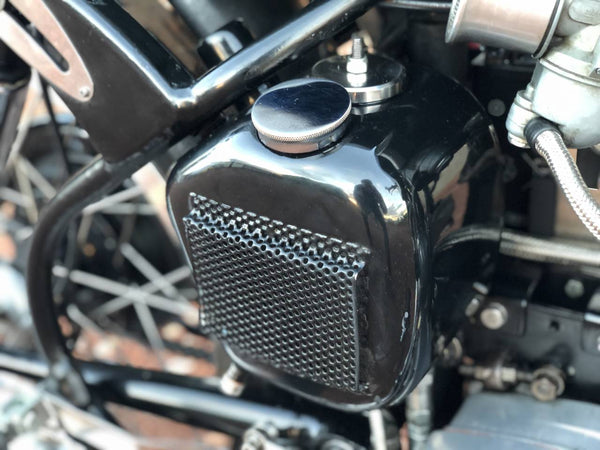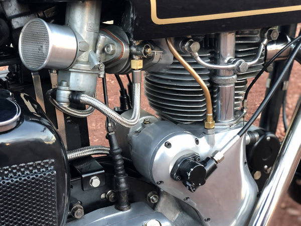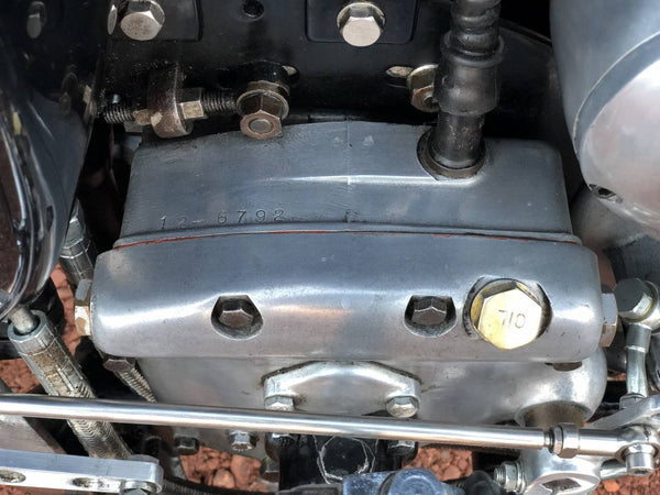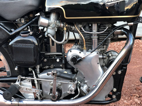 Motor: Der wahre Wert dieses Velo liegt im Juwel eines Motors. Um Alan Walker wurde die Kurbelzahlen mit abgeschrägten, erleichten und ausgewogenen Schwungrädern gebaut. Carillo Conrod und Cosworth Manx Norton Piston & Rings. Benutzerdefinierte Legierungsfass. Sehr spezieller Squish Head mit überarbeitetem Einlasswinkel und 1 3/8 "Bohrung (geeignet für 1000er Serie oder GP Carb). Goldstar -Rennventilfedern und Titankappen. Ober- und untere Follower werden erleichtert und poliert. Benutzerdefinierte Titan -Pushrods. Benutzerdefinierte DH -Typ Cam. Alle Timing -Zahnrad angepasst. Vernier Typ Einstellbarer Magneto -Ritzel.