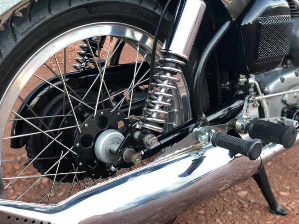 Rahmen nach Geradheit überprüft, gesprengt und gemalt, neu gekuschelt und Schwinge ausgerichtet. NJB Manx Road Racer Schocks & vollständig wieder aufgebaute und neu geschliffene Frontgabeln. Tomaselli verstellbare Ace -Bars und echte Tomaselli -Drosselklappen und Griffe.
