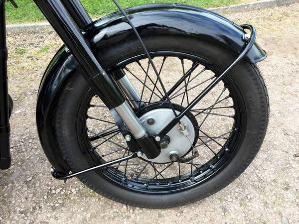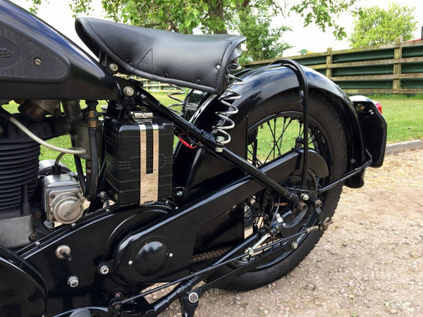 Velocette Mac 1949 350cc, starr mit Teles. Sieht sehr originell aus, beginnt sehr leicht und läuft süß. Gut mit Patina -Taschen verwendet, also etwas ungepflegtes Aussehen.