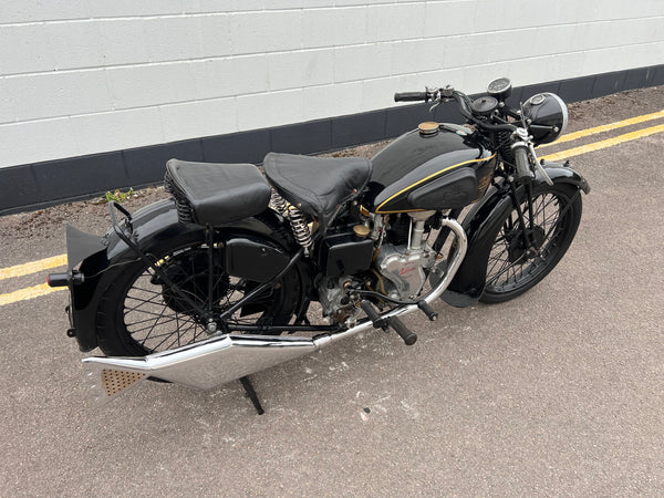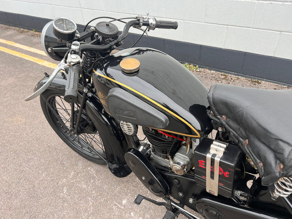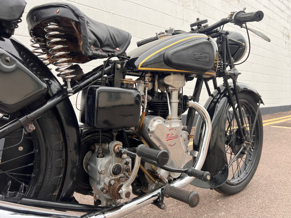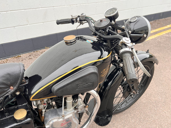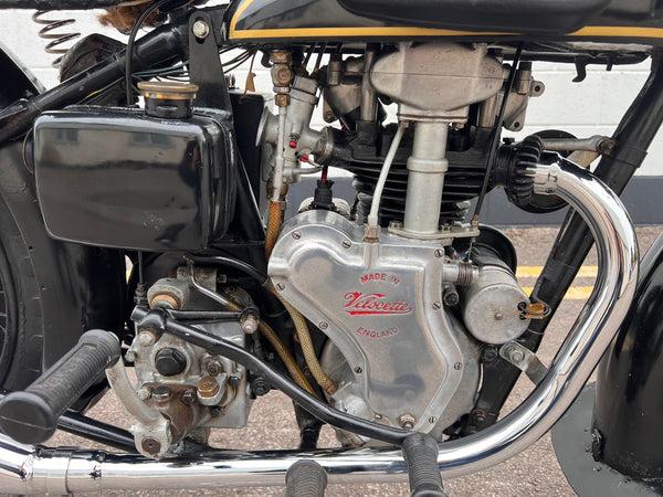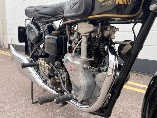 Velocette MOV 250cc 1935. Looks to be in very good condition, most likely an older restoration. It appears to have originally been sold in Ireland with a transfer on the fuel tank suggesting it was at some time supplied by famous Irish racer and Velocette works rider Stanley Woods Motorcycles in Dublin. Need Commissioning Hence great price.