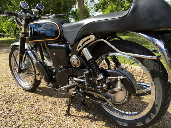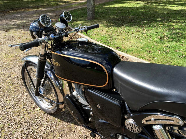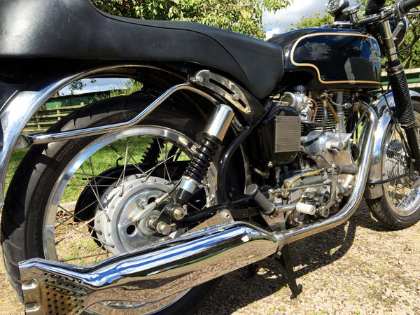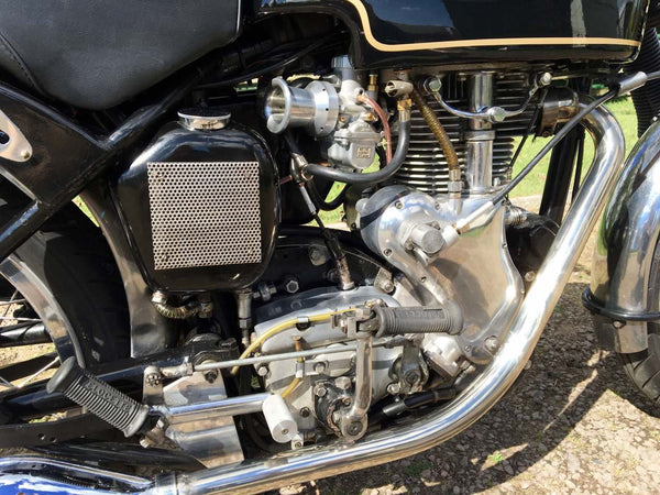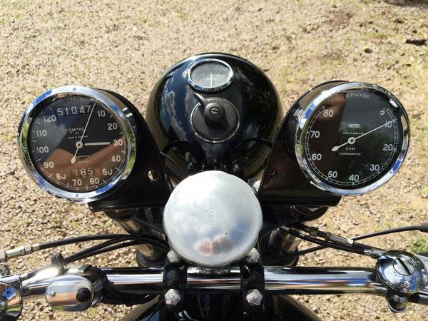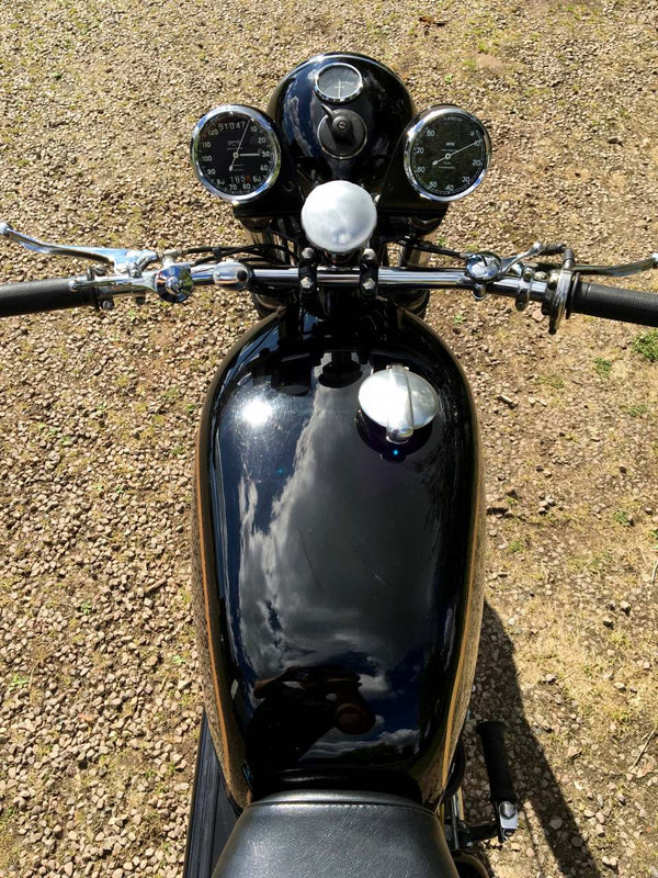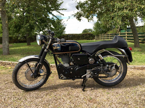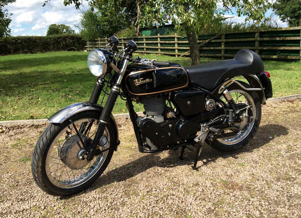 Velocette Clubman / Thruxton Replica 1959 500ccm in hervorragendem Zustand wurde vor 14 Jahren zu dieser Spezifikation restauriert. Der letzte Besitzer hat das Fahrrad durchgemacht und die ältere Restaurierung verbessert. Die Spezifikation umfasst Twin -Chronometrics, Spin -Off -Ölfilter, entlüftete TLS -Frontbremse, Tank im Thruxton -Stil mit Kohlenhydrat -Cutaway, langer Rennsitz, wieder aufgebaute Gabeln, moderner Kohlenhydrat für leichtes Starten heiß und kalt. Überarbeiteter Zylinderkopf mit neuen Ventilen, neuer Mittelstand für einfache Rolle bei und aus dem Wettbewerb, BTH Mag, Edelstahl -Speichen mit Legierungsfelgen. Hagon -Gasdämpfer, Verbesserter Zahnradwählungsmechanismus, elektronischer Regler von 12 Volt und Elektrik. Original Buff Log Book V5C und ursprüngliche wertvolle übertragbare Registrierungsnummer. Beginnt zuerst Kick und rennt und reitet sehr gut. Alle in allem eine sehr gut sortierte gutaussehende Maschine, mit der leicht zu leben und eine großartige Investition zu leben ist.