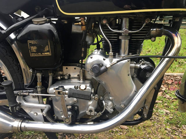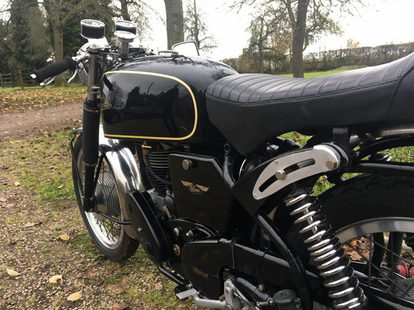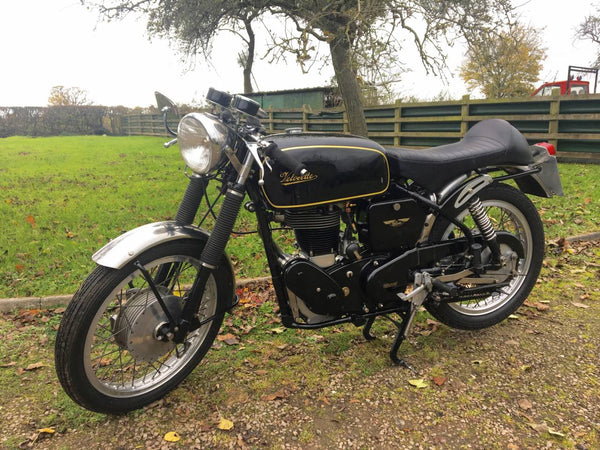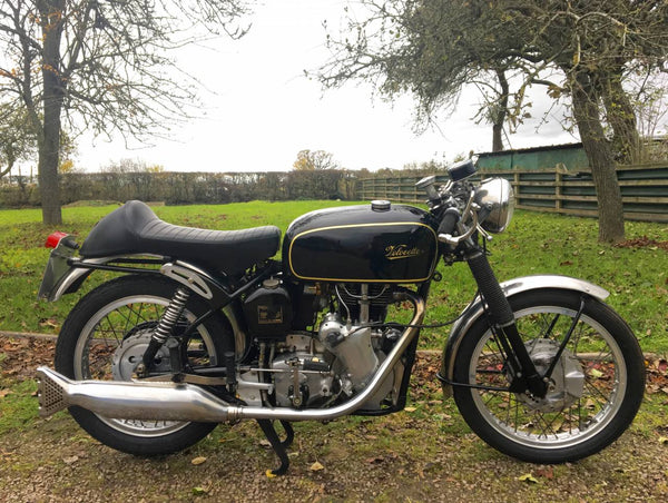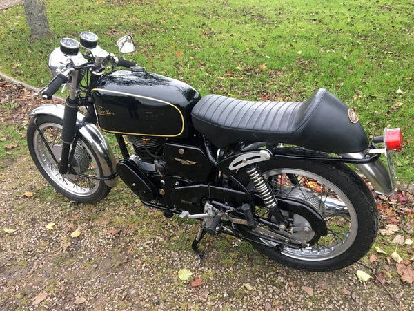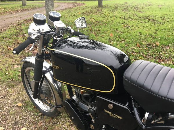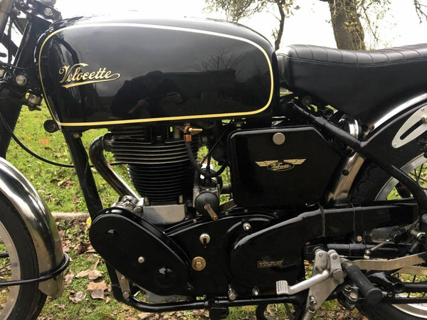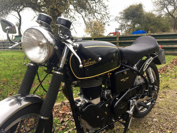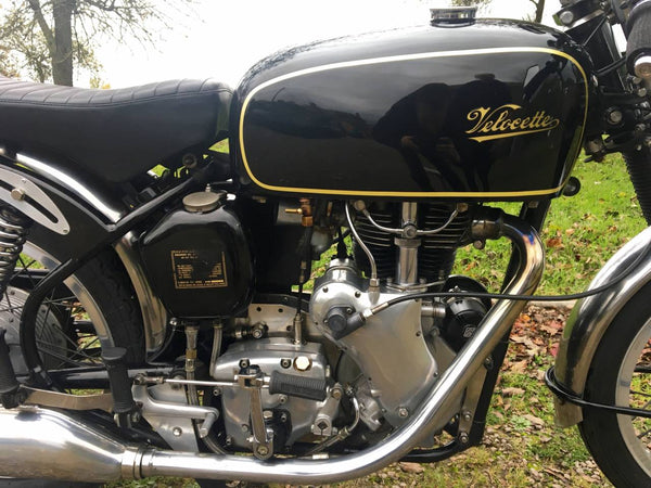 Velocette Thruxton Rep 1958 500cc. Gebaut aus einem passenden Nummern 58 Gift mit 4 Gallonen -Tank, wieder aufgebauter Motor, vom Velo -Experten; Geoff Dodkin mit einem neuen STD -Lauf, Kolben usw., zwei chronometrischen Uhren, Lenkschalter, neuer Alton -Ersatzdynamo, Festkörperregulierungsbehörde, TLS -belüftetes Frontbrems, Legierungsrückstände, Gasse Flanschgeflanscht. Schön aussehendes Beispiel, das steuerlich und motfrei ist, mit einer wertvollen (£ 1700!) Übertragbaren Registrierungsnummer. Ein gutes Beispiel, jetzt mit einer schönen Patina. Ein £ 10K spart auf einem echten Thruxton. Eine sehr gute Investition.