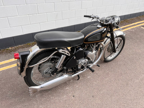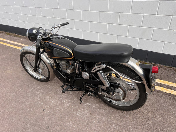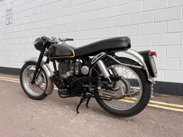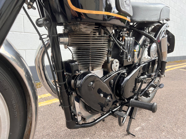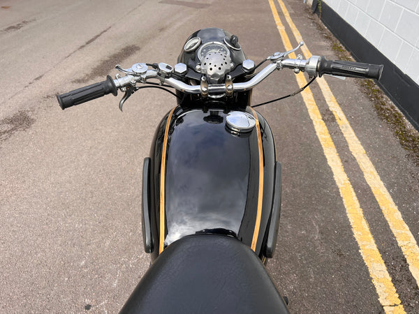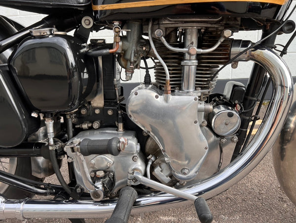 It has a Prefix 12 close ratio gear box and a BTH racing magneto. The gear change is reversed (1 down, 3 up) so it seems likely that it was in Clubman trim at some stage. It was brought back from the States by an American pilot in 1993 and he undertook the restoration in the UK as he was living here at the time.