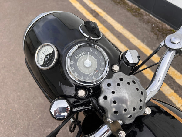 Velocette Venom Clubman 500cc 1960. In nice condition looking to be an older restoration with only 1865 miles on the clock. Restored into standard trim. Confirmation from Grove Classics that it left the works as a Clubman. Runs very well as can be seen in the video. Also starts easily for a Velo.