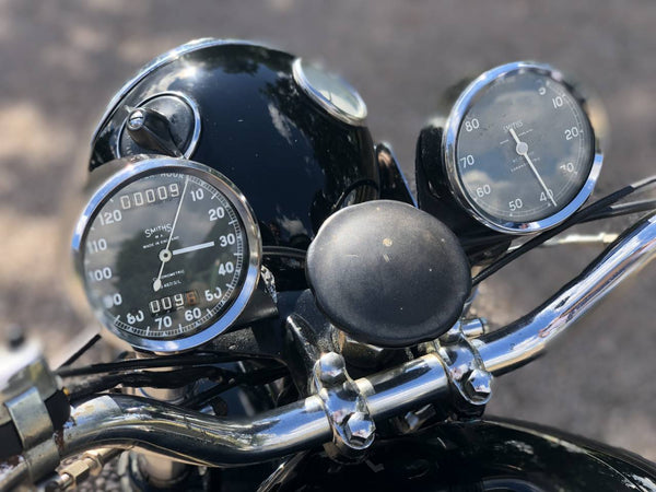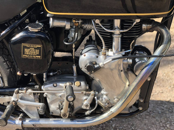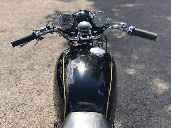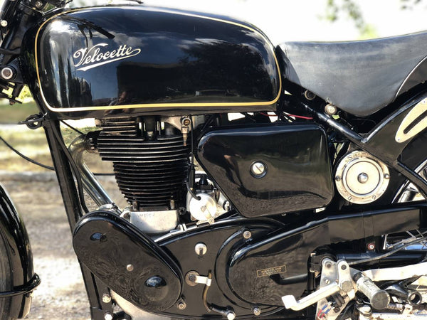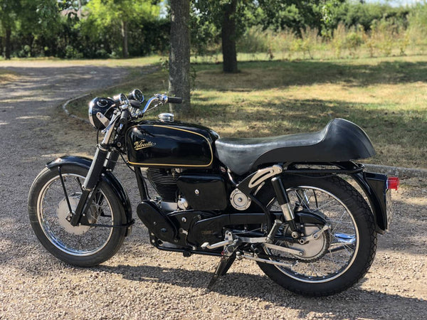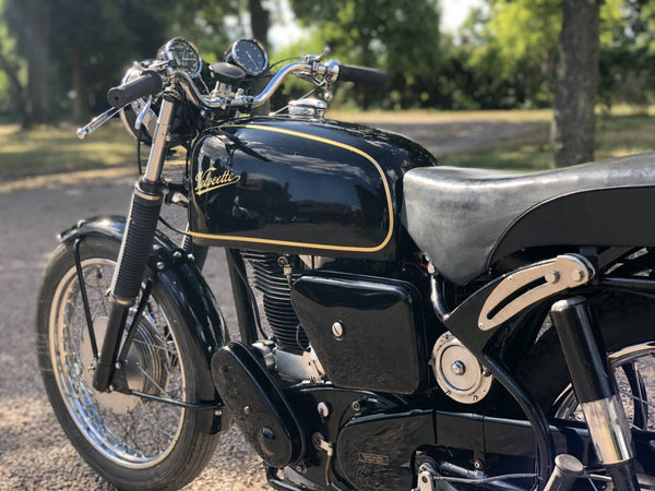 Velocette Venom 1958 in Clubman / Thruxton Trim. Dies ist ein echtes, korrektes Beispiel für Originalanpassungsnummern mit dem richtigen "12" Getriebe mit einer schönen Patina des Alters. Es verfügt über einen 4 -Gallonen -Clubman -Panzer von Chronometrie. TLS, entlüftete Vorderbremse, Sitz im Thruxton -Stil, neue korrekte hintere Heckschocks (noch nicht ausgestattet) ein hübsch aussehendes und ausgewogenes "Special" mit den besten Teilen! Startet, läuft, reitet & Stopps, nur wie ein guter sollte!