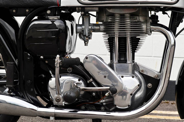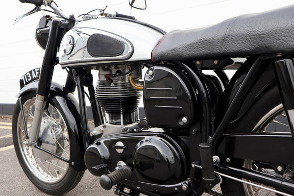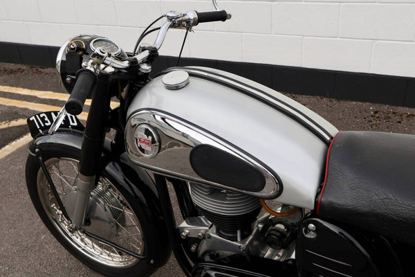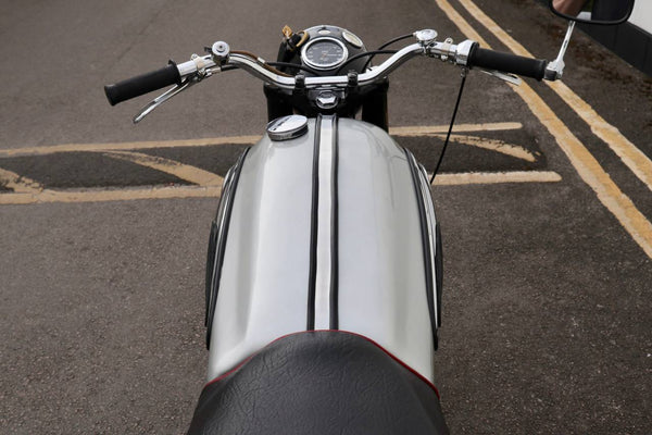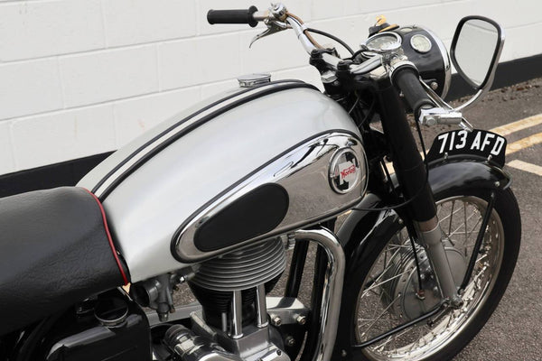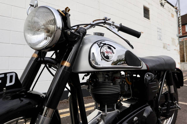 1960 Norton Modell 50 350cc. In gutem Zustand mit passenden Motor- und Rahmenzahlen. Diese originalen Federrahmenmodell 50 sind sehr selten! Viele von ihnen wurden für Tritons verwendet, da ihre Frames und ihre kleineren CC -Motoren originell machten, wenn sie einmal schwer zu finden waren. Beginnt leicht mit einem glatten Motor. Sehr gut betreut der vorherige Torhüter, der Ingenieur war. Kommt mit einer guten Quittungsdatei, MOT und auch mit seinem ursprünglichen alten Buff Log Book. Ein fantastisches Beispiel für das Modell, das bereit zu fahren und zu genießen ist!