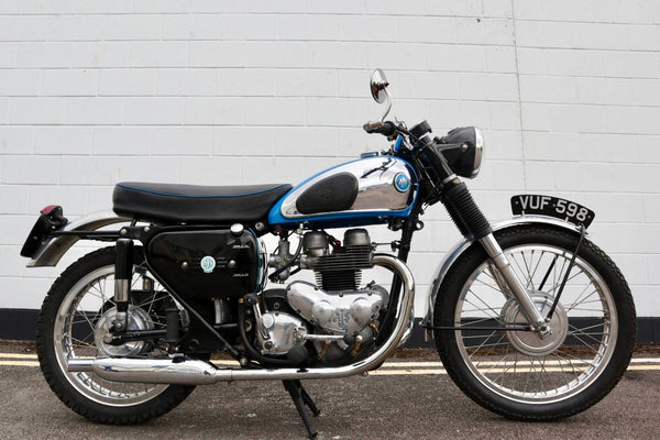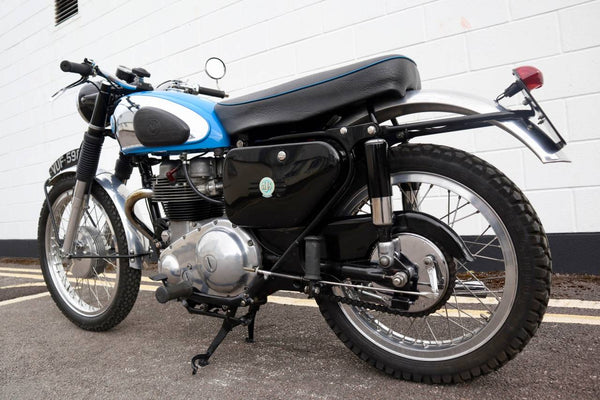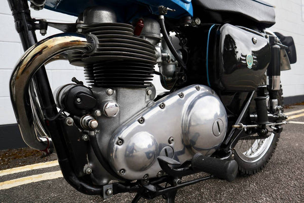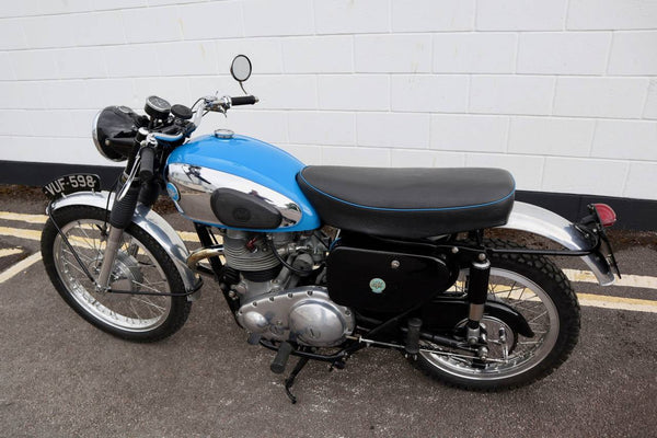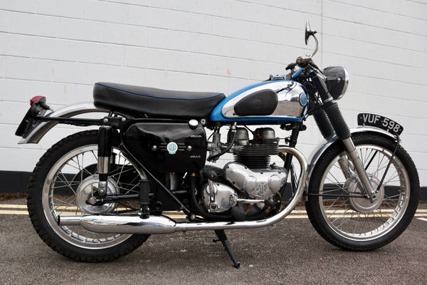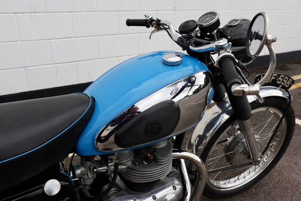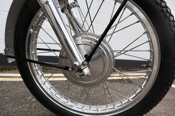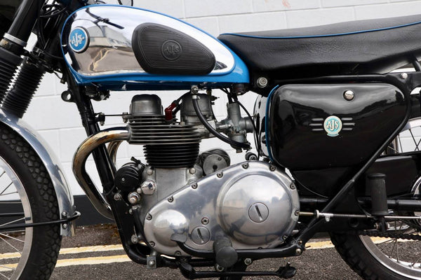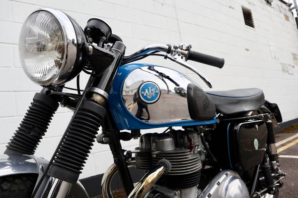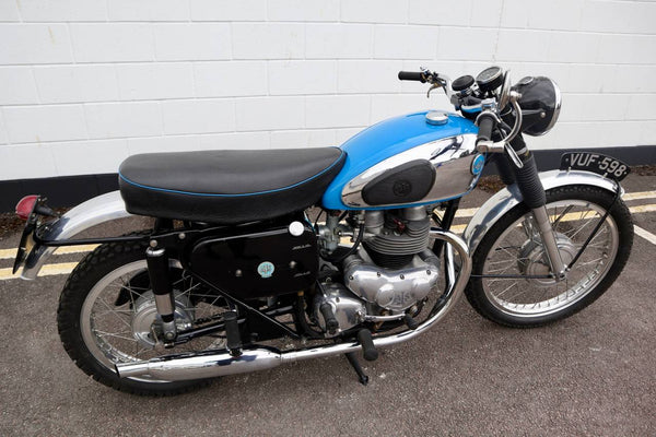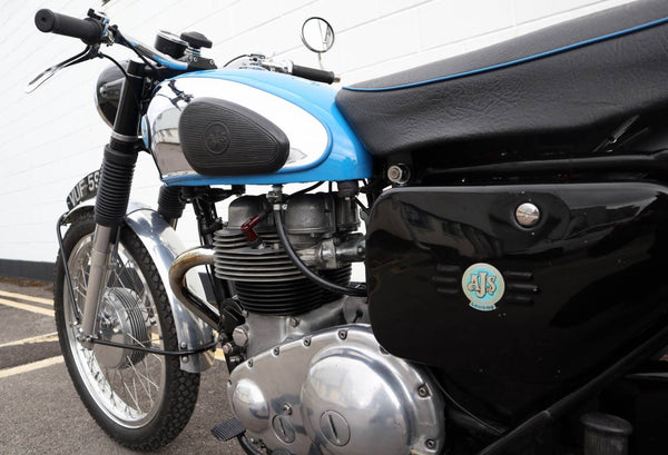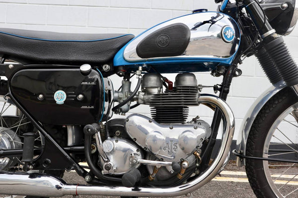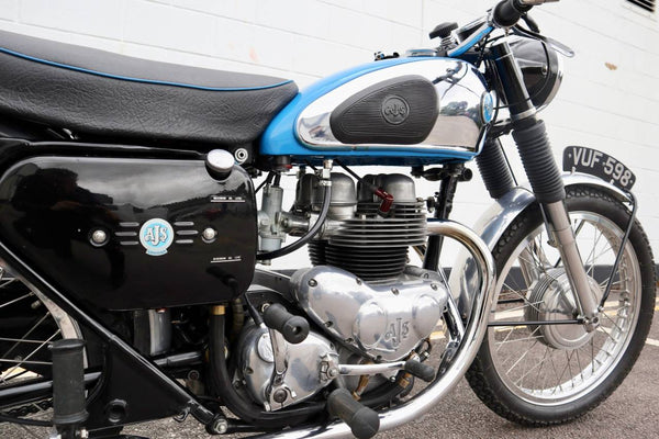 1958 Modèle AJS 30 600cc. En excellent état ayant été restauré il y a quelques années. Lorsqu'il a été restauré, il a été fait pour reproduire une variante CS, des tuyaux siamois et des garde-boue en alliage. Le moteur semble fantastique et le vélo commence facilement. A été mis à niveau vers la V12. Livré avec son numéro d'enregistrement transférable d'origine et son journal de bord de carte vert d'origine. Vient également avec un grand fichier d'historique qui comprend les anciens journaux de bord, le certificat de rencontres, les reçus et les MOT. Un excellent exemple du modèle prêt à rouler!