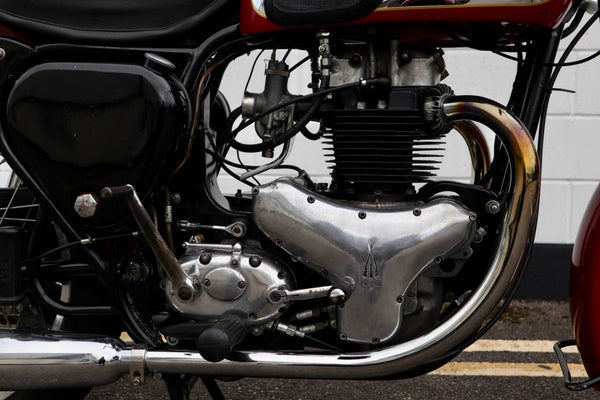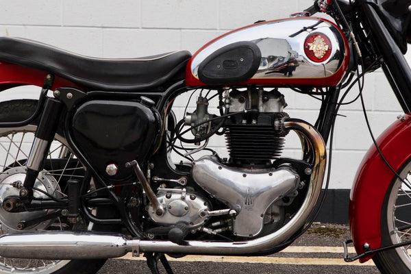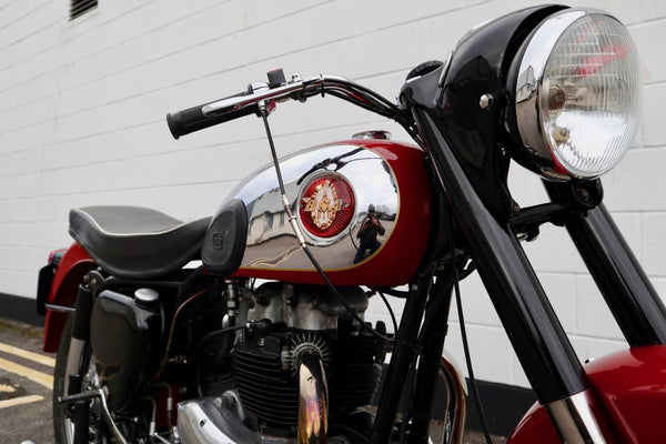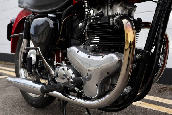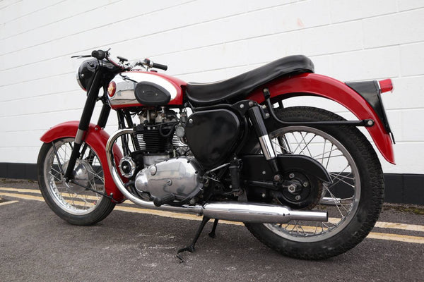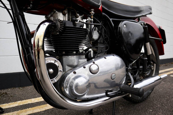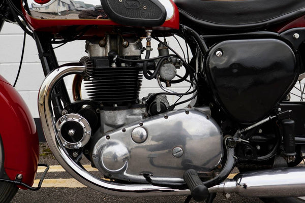 1958 BSA A10 Golden Flash 650cc dans une palette de couleurs Super Rocket. Une restauration plus ancienne en beaux conditions avec des hubs alliés polis en pleine largeur. Commence facilement et sonne bien comme on peut entendre dans la vidéo. Livré avec un bon fichier d'histoire montrant une maintenance régulière. Un vélo classique 650 très utilisable à un prix raisonnable.
