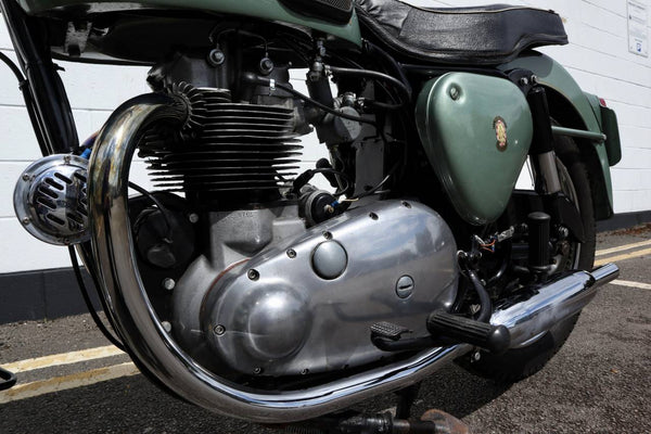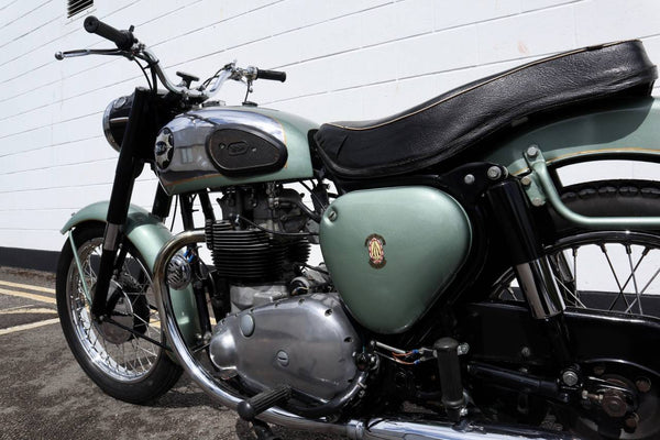 1958 BSA A7 Shooting Star 500cc. Dans un bon état utilisable, l'A7SS semble être très original. Commence facilement et roule bien. Livré avec V5C et reçus pour les travaux effectués. Beaucoup de travaux ont été réalisés, ce qui comprend: de nouveaux roulements principaux, une manivelle de réapprovisionnement et de nouvelles vannes. Un bel exemple utilisable qui est prêt à rouler!