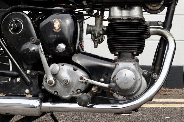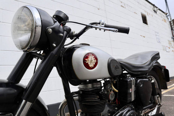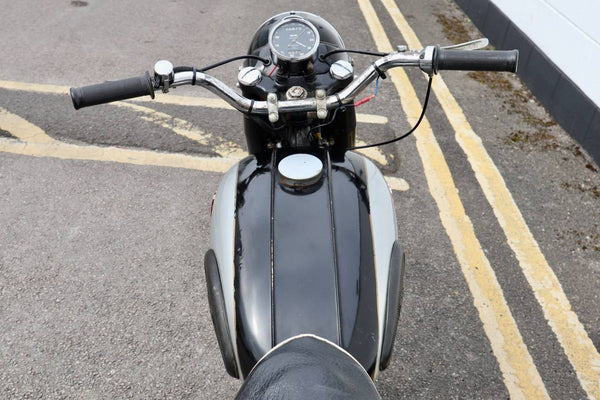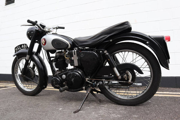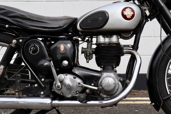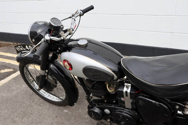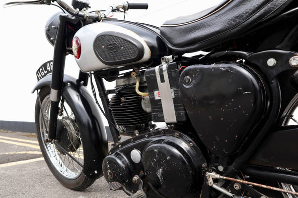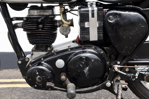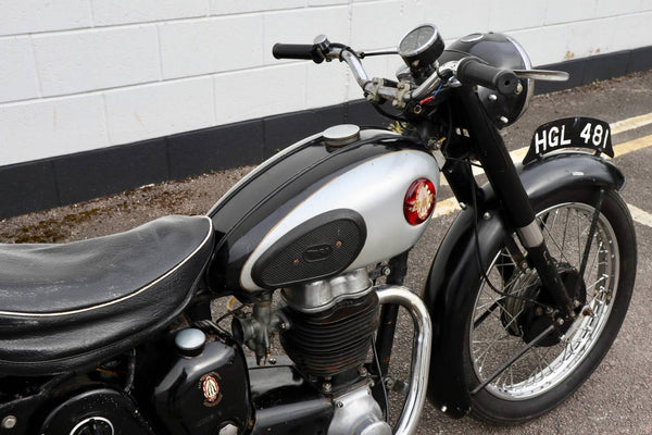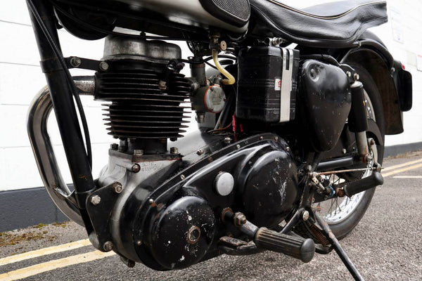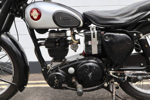 1958 BSA C12 250cc. Un bon vélo dans un état utilisable. Commence, les courses et les promenades très bien, tout comme récemment, la fin de la fin de l'huile a été rémunérée. Avec une pompe à huile reconditionnée. Le système électrique a également été révisé - un nouvel interrupteur d'allumage, une batterie de cellules sèches, etc. est livré avec le journal de bord d'origine ‚äòbuff, le V5C actuel, le carnet de services et certains vieux MOT. Fume un peu mais semble trop clair. Prêt à rouler.
