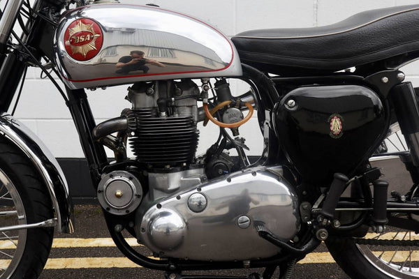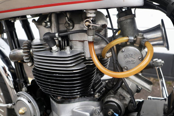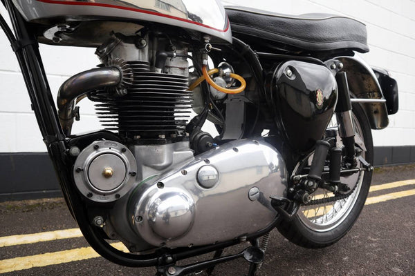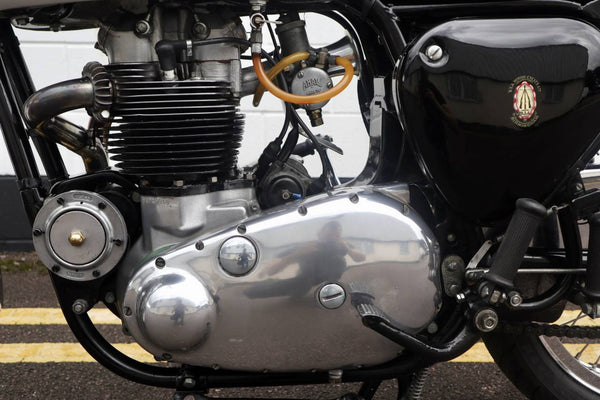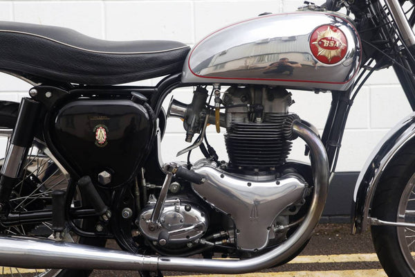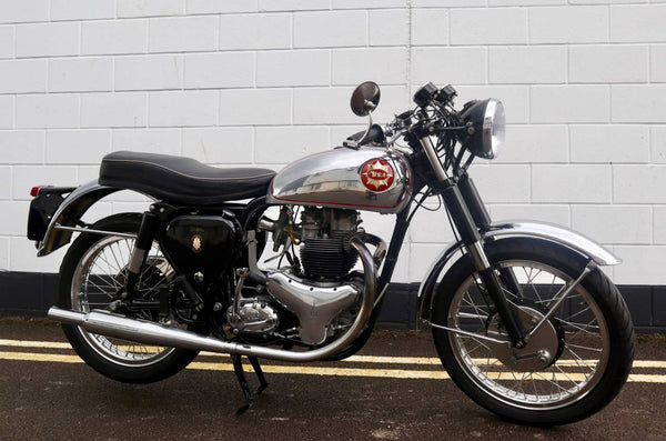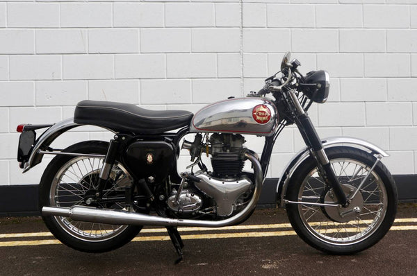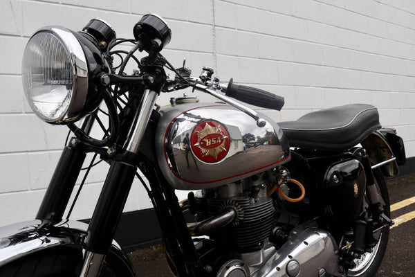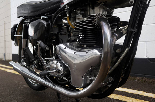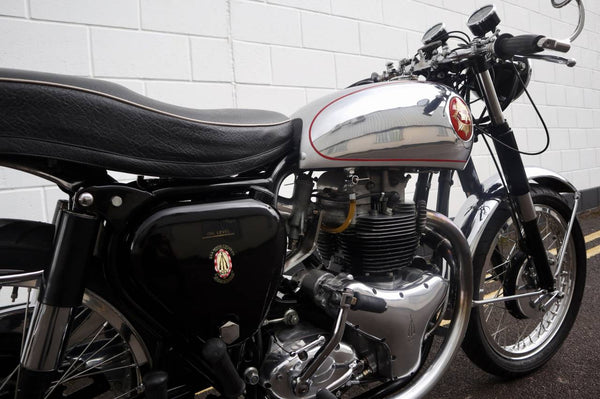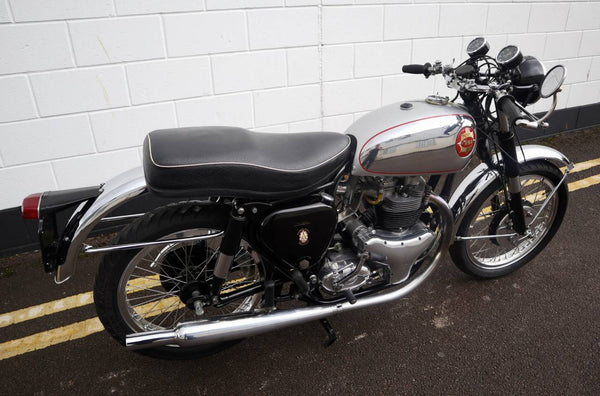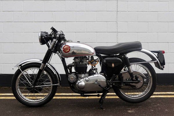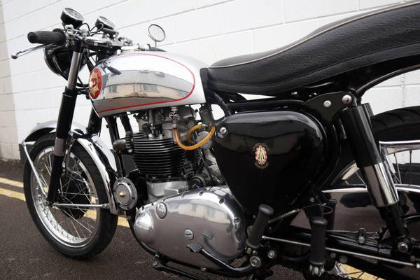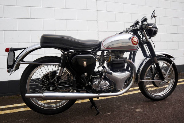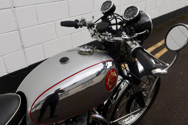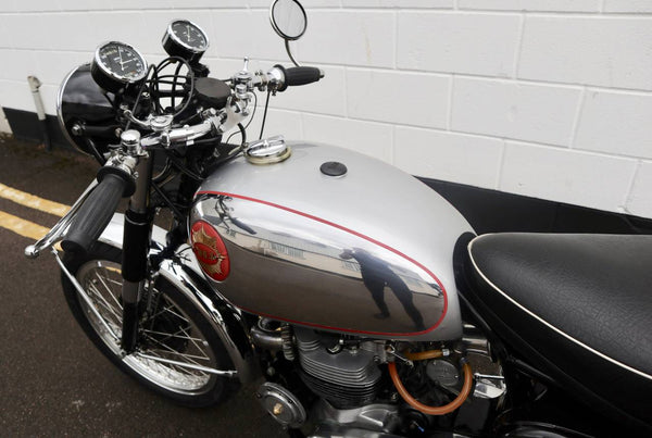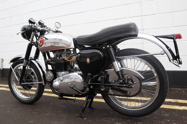 1958 BSA Rocket Gold Star Replica 650cc. Ceci est un excellent exemple de réplique R.G.S, construit avec beaucoup de pièces Goldie originales pour le faire ressembler à l'article authentique! En bonne condition esthétique avec un grand travail brillant. Également dans un état mécanique fantastique après avoir reconstruit un moteur avec des pièces SRM il y a 4816 miles. Les autres travaux comprennent: le roulement latéral de synchronisation, l'alimentation à huile d'extrémité, la pompe à huile SRM. Electricité primaire de la courroie et 12V. Cela semble génial comme on peut entendre dans la vidéo et commence le premier coup de pied. Dans l'ensemble, un exemple très présentable qui est prêt à rouler et à profiter!