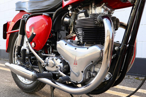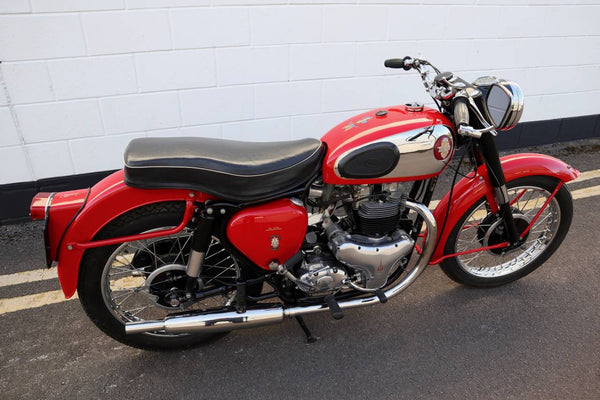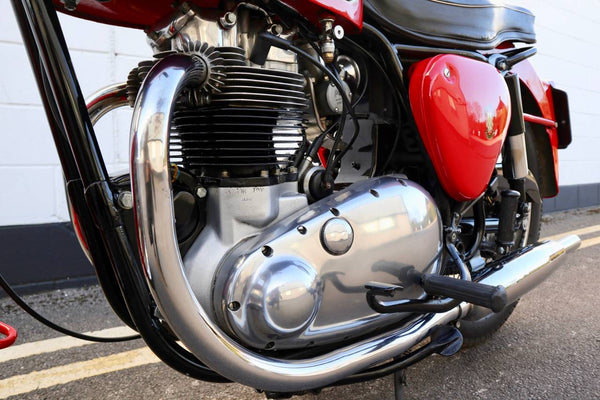 1958 BSA A10 Super Rocket 650cc. En excellent état avec des numéros de moteur et de trame corrects, comme confirmé par l'ancien journal en carton et le nouveau journal de bord V5C actuel. Le vélo a fait 2000 miles depuis la restauration, avec de nouveaux pneus Avon de type correct ajustés et commence le premier coup de pied.