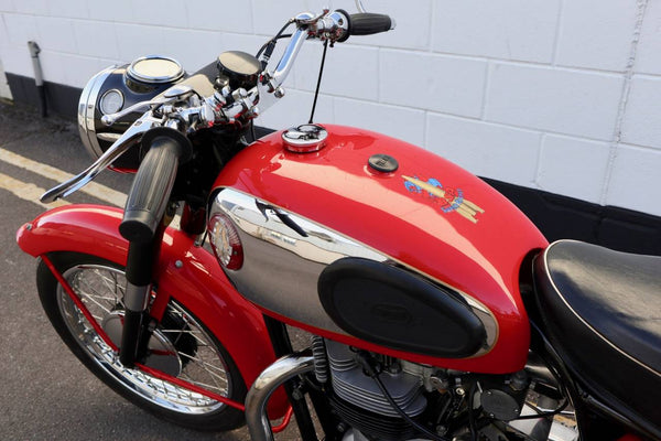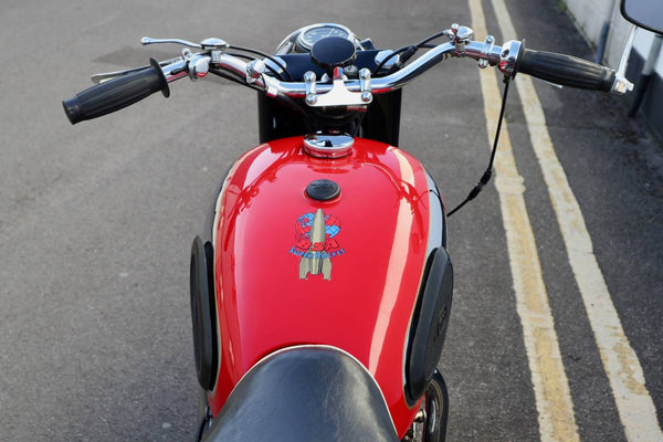 A des commutateurs d'origine, des leviers, un ampèreter, un speedo chronométrique d'origine, une magnéto d'origine, un siège d'origine et non un repro, des bouchons de bouchons de lodge, des robinets ewarts originaux équipés de nouveaux bouchons, du carburateur monobloc d'origine, etc. Excellente peinture et chrome. Plus de reçus pour les travaux détaillés et les pièces d'origine équipées depuis la restauration. Un superbe exemple et doit être le meilleur sur le marché. Un excellent investissement.
