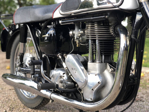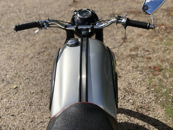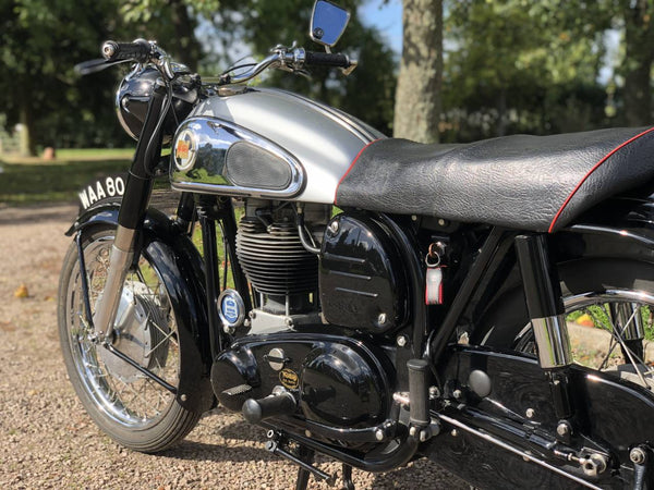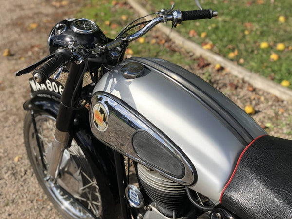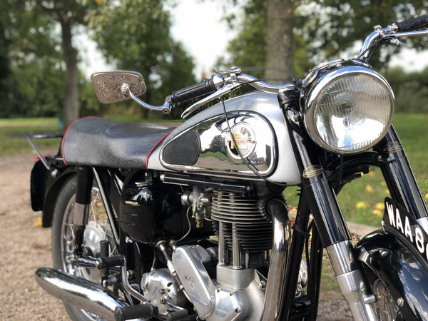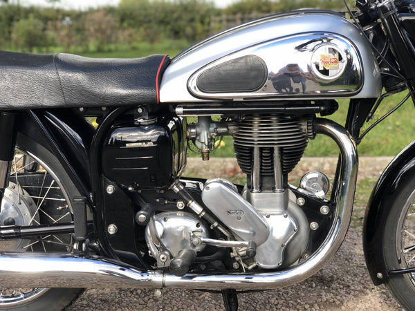 1959 Norton ES2 500cc. Ça a l'air glorieux en argent, noir et chrome après avoir été récemment restauré. Cette belle machine est livrée avec le célèbre cadre de lit de plumes Norton Wide Line (réputé pour être l'un des meilleurs cadres de manipulation jamais fabriqués). Un plaisir de rouler avec le cadre de ligne large qui complète parfaitement le couple du moteur 500cc ES2 OHV. Un vrai vélo Riders avec un grand potentiel d'investissement. Tax et MOT exonéré.