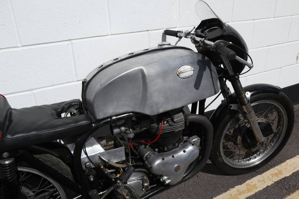 1958 Norton Dominator 99 650 Racer classique. Vélo de parade enregistré par la route avec un cadre de lit à plumes à large ligne de 1958 à la route équipé d'un moteur Dominator 650cc 99. Cela semble super avec des tuyaux directement. Prêt à l'emploi sur la piste ou à faire plus de machine à la route. Livré avec le journal de bord V5C actuel!