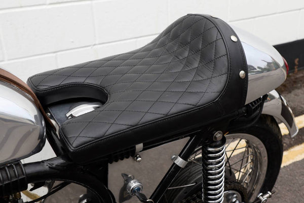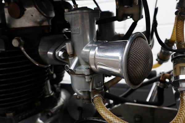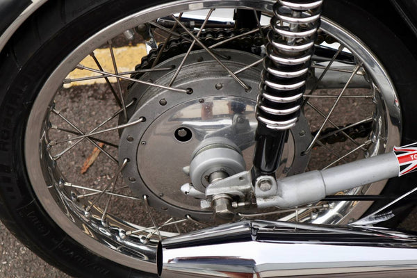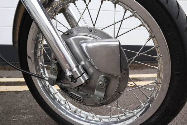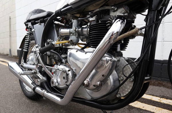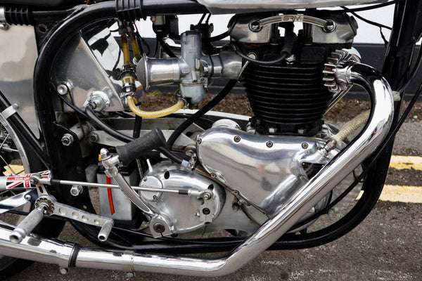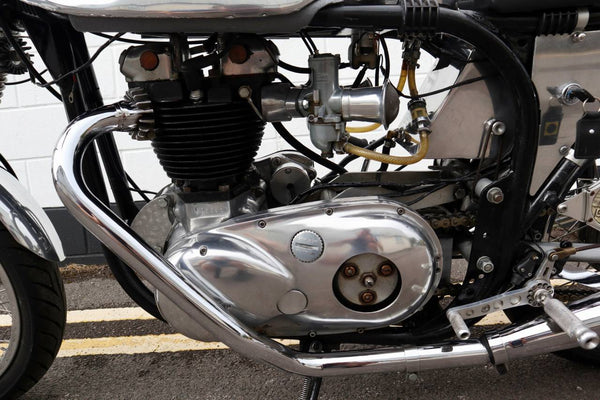 Norton Dominator 88 Cadre de lit de plumes larges équipé d'un moteur Thunderbird à gros roulement de 650 cm3 amélioré avec des glucides jumeaux, des puits de came Bonneville, des chaînes primaires et secondaires de liaison GD. Avec AMC Norton Gearbox. Avec T150 Front End, Throixton Twin Leading Shoe Free Freed Free & Hub, Norton Commando arrière Hub, Boyer Ignition System et Allie Seat. Livré avec le journal de bord V5C et le certificat de datation VMCC. C'est un très beau triton avec de superbes spécifications!