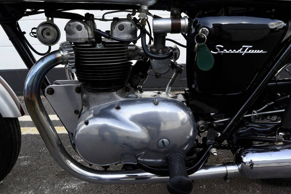1958 Triumph 5ta Speed Twin 500cc. Avec des numéros non correspondants. Ce triomphe 5TA a été construit au même modèle qu'un modèle Tiger Cub avec des roues de 17 pouces. En bon état utilisable avec une belle peinture. Aubaine!