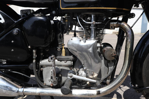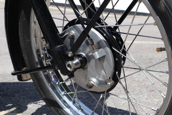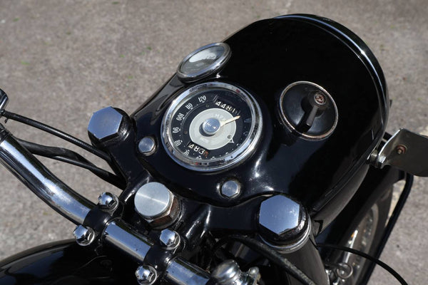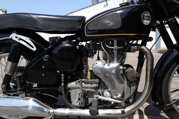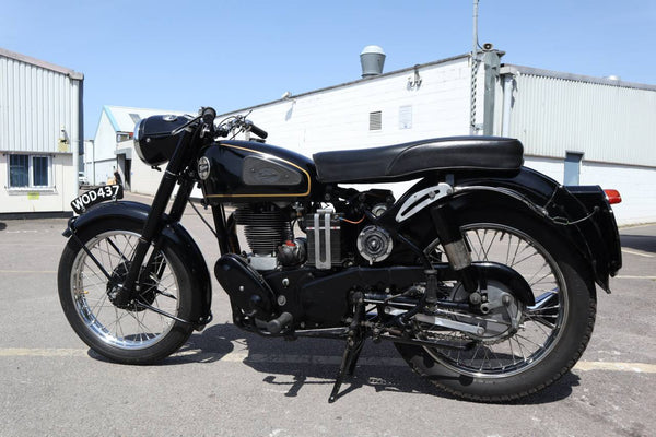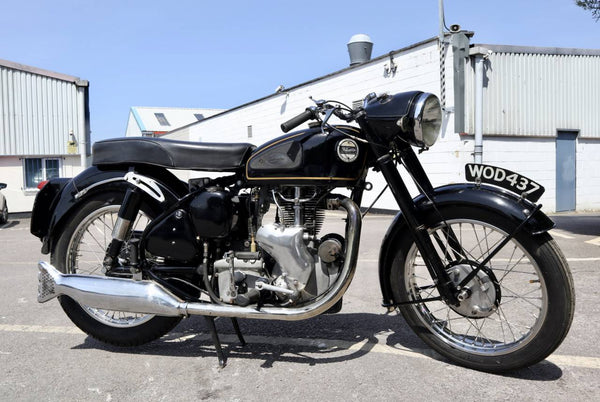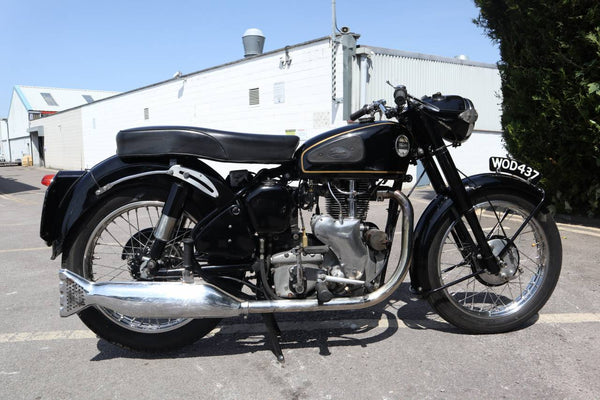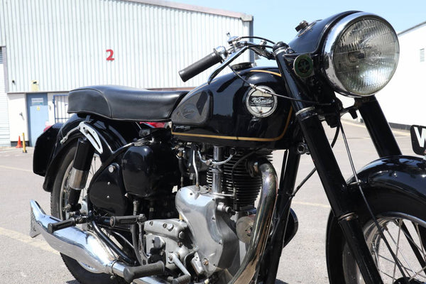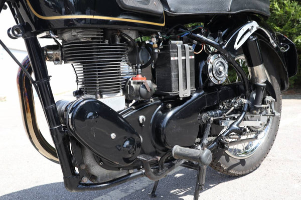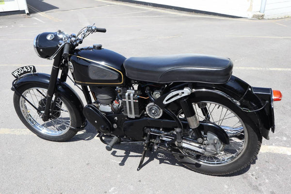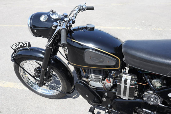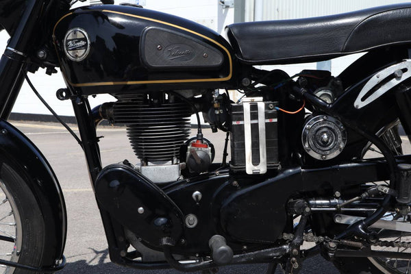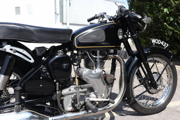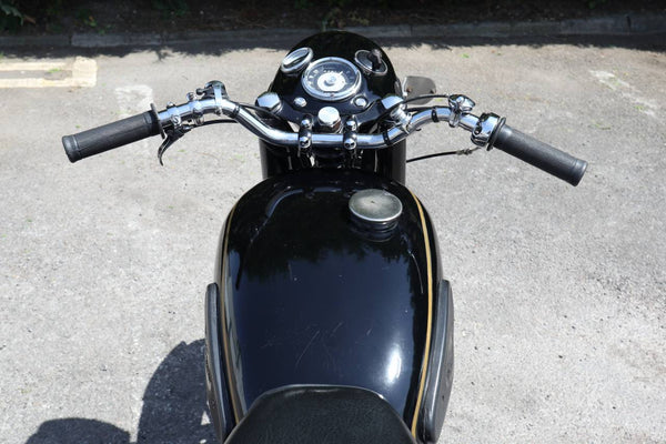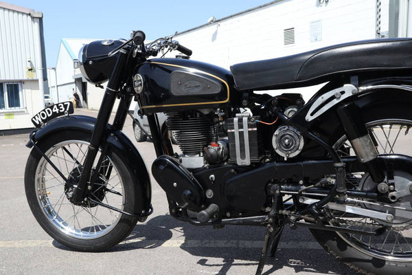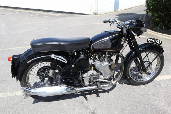 1957 Velocette MSS 500cc. semble être dans un état très original et conserver son numéro d'enregistrement d'origine (WOD 437). Les numéros de moteur et de cadre sont également corrects, comme le confirment le journal de bord Buff original qui est livré avec le vélo. Livré avec un bon dossier d'histoire qui comprend des anciens MOT, des reçus pour les travaux effectués et quelques anciens disques fiscaux. Commence ses courses et roule très bien. Un bel exemple utilisable qui est prêt à rouler et à profiter.