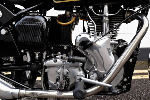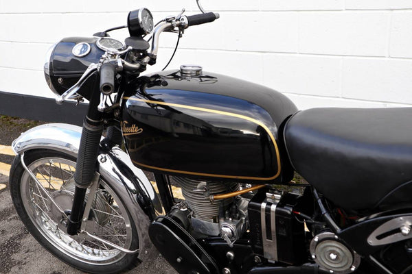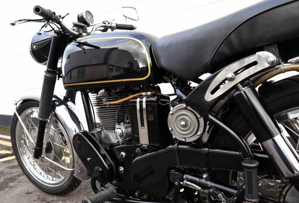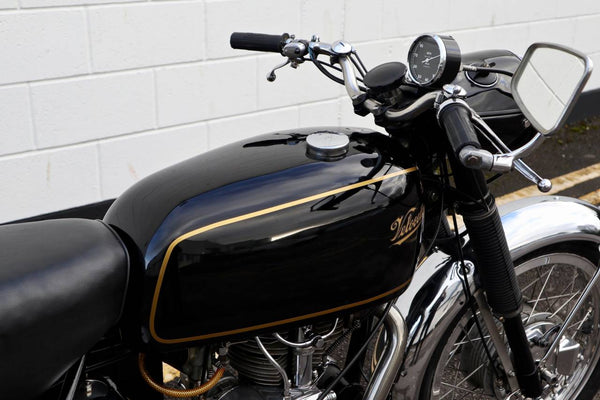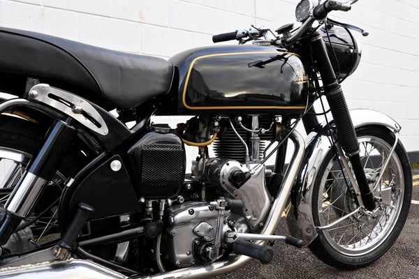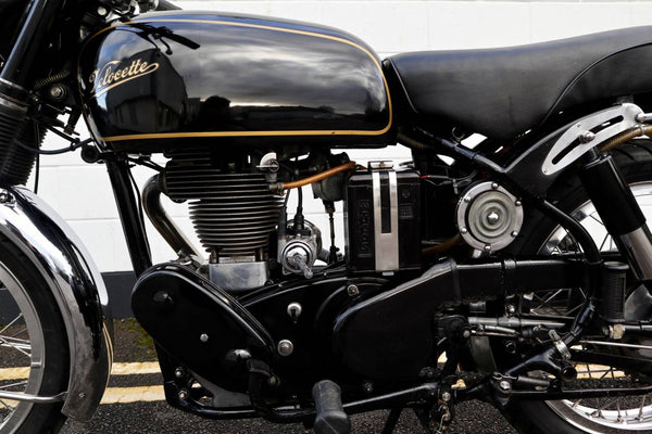 1956 Velocette Venom Clubman 500cc. Dans une superbe commande et avoir été passé par le célèbre Geoff Dodkin qui a réglé le moteur et a tamponné le moteur avec ses initiales et son numéro de construction à 2 chiffres pour le confirmer. Livré avec Thruxton¬¬ † ¬ † ¬ † Siège; Clubman Fuel Tank; Réservoir d'huile Thruxton; Counter Rev chronométrique et Speedo et Frein avant TLS.