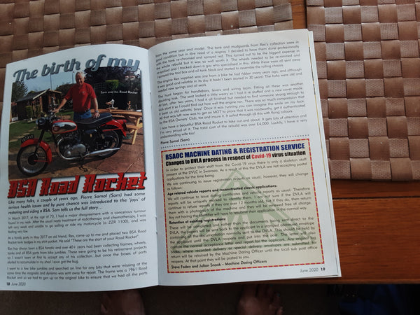 - Bike was my late husband's rebuild project. It has always been kept in dry workshop and occasionally been started but not ridden over the last 12 months. All paperwork comes with it..registration document, BSAOC vehicle report and dating certificate, and all invoices relating to rebuild.