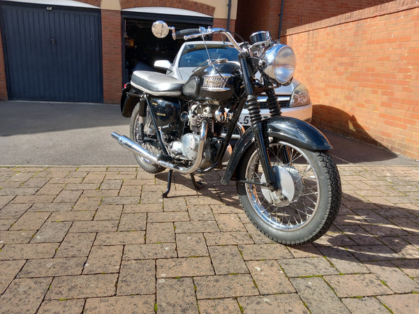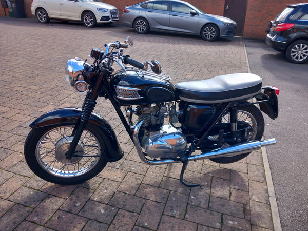 1965 Triumph 3TA for sale that has been modified to resemble a Triumph T90. The motorcycle starts and runs adequately and has a decent cosmetic condition, as shown in the included photos.