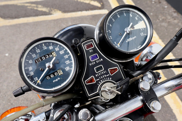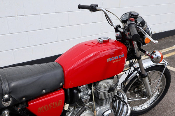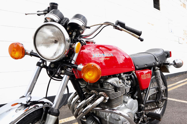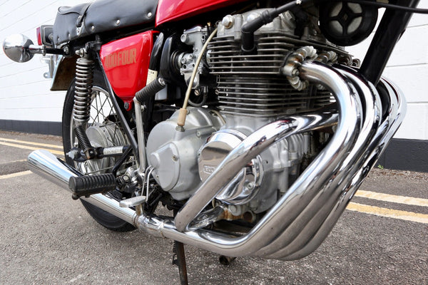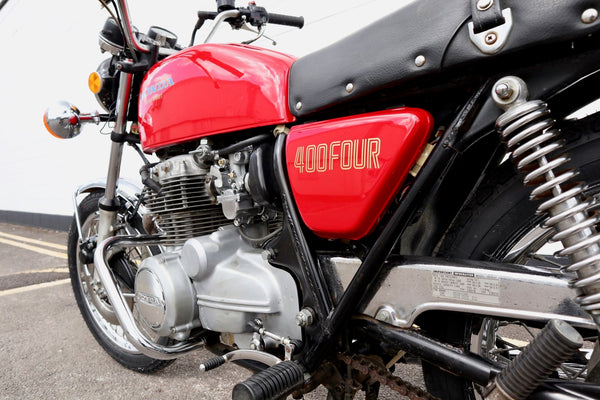 1975 Honda CB400 Four. Looking to be in great all original condition with its original exhaust system. All the the bright work is in fantastic condition for its age. With only 11539 miles on the clock. Starts on the button with a smooth, free revving motor. This is a fantastic example thats ready to enjoy!