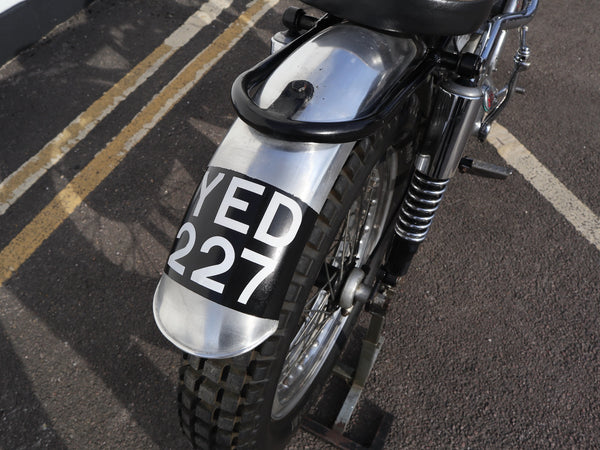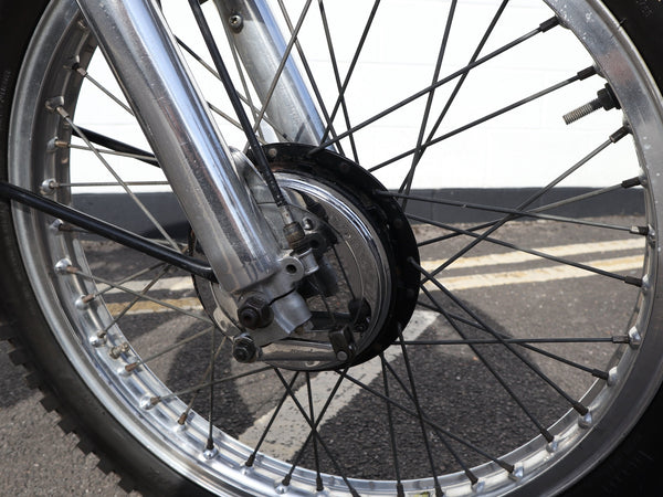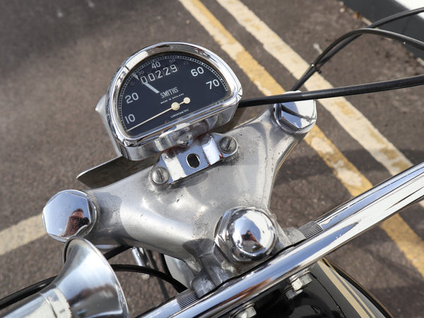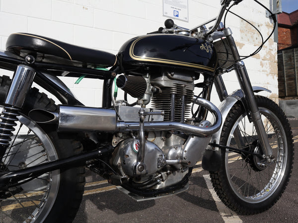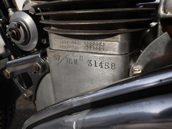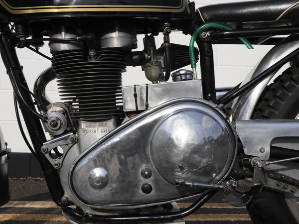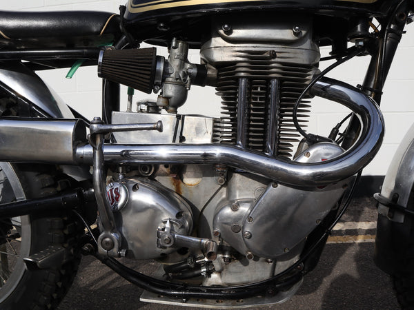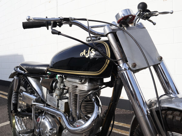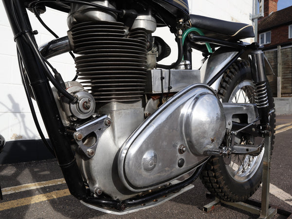 AJS 16CSコンペティションスクランブラー350cc1960。非常に素晴らしいオリジナルの状態の非常に珍しいクラシックスクランブラー。古いカードバフのログブックで確認されているように、元のフレームと登録番号(YED 227)を使用した古い修復物のようです。非常によく始まり、十分な力で走り、素晴らしい乗ります。手入れが行き届いており、整備されています。古いMOTと領収書を含む履歴の良いファイルが付属しています。珍しいモデルとスーパー例!