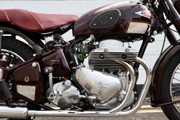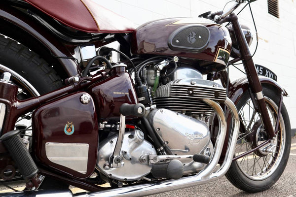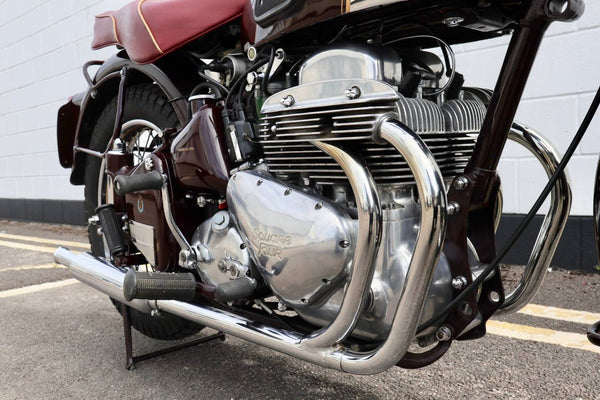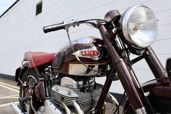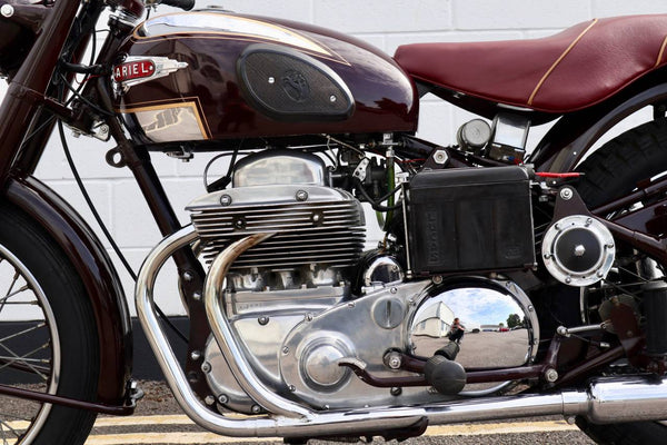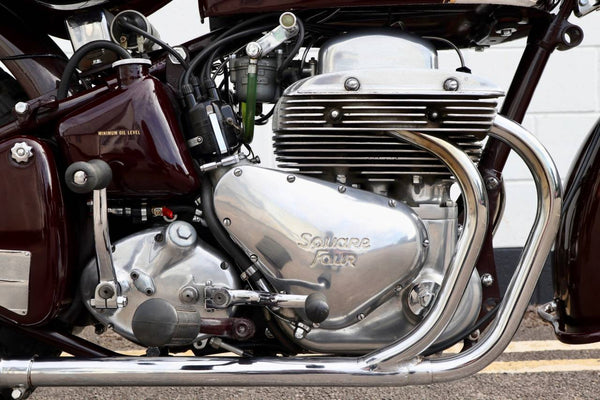 1953 Ariel Square vier Mk 11 vier Piper 995.CC in volledig hersteld in de staat en sindsdien slechts 500 mijl bedekt. Het heeft de externe oliefilterupgrade en begint gemakkelijk en loopt perfect. Waarschijnlijk de mooiste en best beschikbare in het zeer aantrekkelijke diepe kastanjebruine kleurenschema; Naar onze mening de beste kleur! Klaar om te rijden. Een geweldige investering.