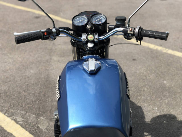Dit voorbeeld in blauw en chroom is in uitstekende volgorde met een mooi blauw en chroom kleurenschema met mooie chromen bewakers en velgen en 4 in 4 geluiddempers. Begint op de knop en klinkt fantastisch en is erg moeilijk te beschuldigen met uitstekende bouwkwaliteit. Een geweldig alternatief middengewicht voor de Honda Fours! Veel papierwerkgeschiedenis. Registratie is gerelateerd aan de importdatum, niet manufacure. Heeft Benelli Owners Club Datum of Fabricage Certificate voor belasting- en MOT -vrije status.