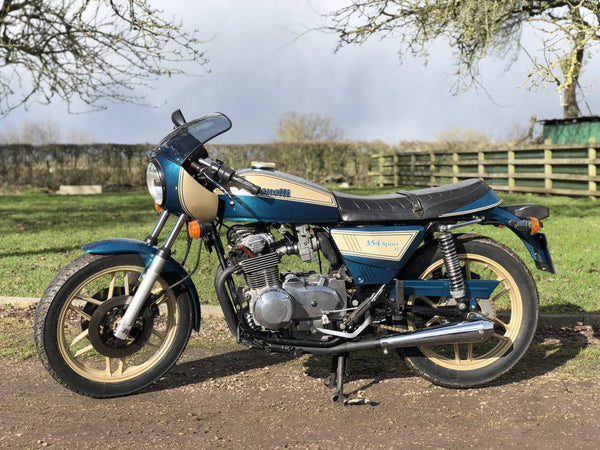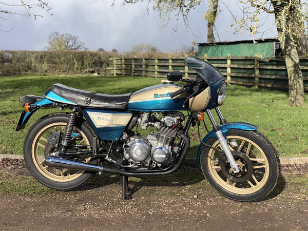 Benelli 354 Sport 2 1981. Dit is een goed gebouwde, klassieke Italiaanse 4 -cilinder; Met slechts 10876 mijl. Dit is een zelden beschikbaar model, dat volledig is gerestaureerd, door een getalenteerd Benelli Club -lid, naar een hoge cosmetische en mechanische standaard; De foto's en video laten je zijn uitstekende toestand zien. Druk op de knop en deze vuurt onmiddellijk omhoog, met een frisse Reving, mechanisch rustige motor, die loopt, zaaimachine glad, met een mooie, vlezige uitlaatnoot. Het is net onderhouden en komt met een fris; Geen adviezen Mot. Velen hebben gezegd dat Benelli's volgens een hogere standaard zijn gebouwd, dan de equivalente Honda's, zoals de 400/4. Als je ziet, hoort en er een rijdt, zul je het waarschijnlijk eens zijn!