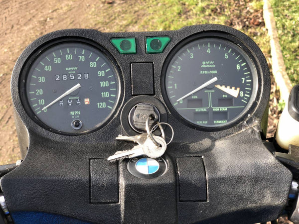 BMW R65 1985 650 cc, extreem origineel, in prachtig metallic blauw kleurenschema, met bijpassende nummers, lage kilometers; 28 K, slechts 3 eigenaren; Lange schone mot, nieuwe batterij. Zeer goed verzorgd en starten en hardlopen en heel goed rijden, met een uitstekende rustige motor. Had een nieuwe koppeling en versnellingsbak opnieuw opgebouwd op 19k mijl. Wordt geleverd met BMW -rekken, fietstassen en sleutels, originele gereedschapskit, EHBO -kit, handboek van renners, handleiding voor eigenaren en BMW Twins Restoration Manual. In mooie staat overal. Een eenvoudig te onderhouden, betrouwbare, zoete, middengewicht, luchtgekoelde bokser. Grote waarde en een stijgende klassieker, bij Bantam 125 geld .. maar niet lang! Geluidsinvesteringen.