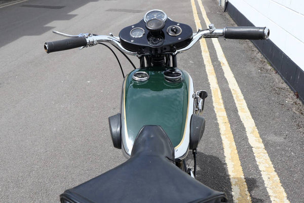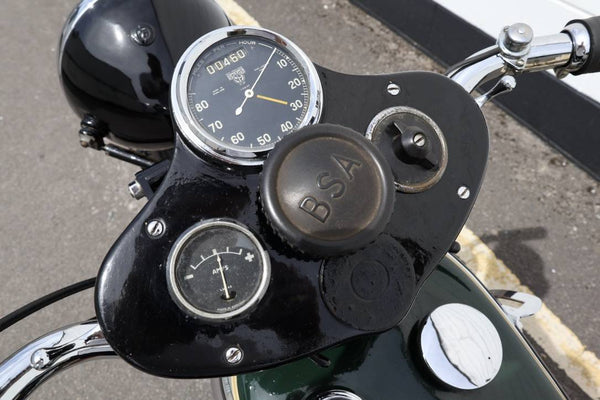 1931 BSA 500cc OHV Twin Port Sloper. Het lijkt een oudere restauratie te zijn en nog steeds in mooie staat met alles wat goed werkt. Zeer zeldzaam met instrumentenpaneel op de handgreepbars. Loopt geweldig met een bonzende motor. De klok lijkt te zijn hersteld, dus lage milage. Wordt geleverd met een V5C -logboek, klaar om te rijden!