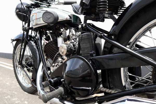 De motor bevatte natte-knoopsmering aangedreven door een met de hand gemalen, tandwieltype oliepomp en een apart oliecompartiment in het carter. De cilinderkop met één poort was uitgerust met aluminium behuizingen die de rockers omsloten terwijl de klepveren blootstelden. De duwstangen waren ingesloten en de nokkenas bevatte geleidelijk gebogen lobben om slijtage te minimaliseren. Zware vliegwielen zorgden voor het koppel bij lage toeren en topsnelheid was 75 mph (121 km / u). Het had een drie-versnellingsbak, met de handwisseling.