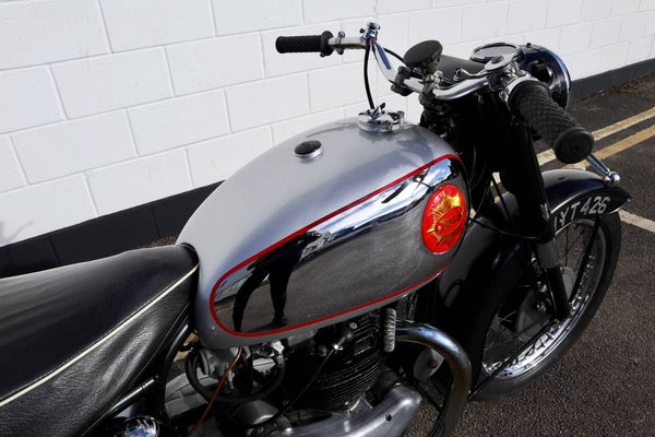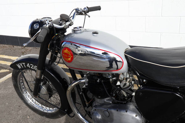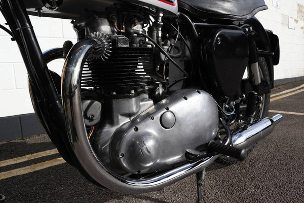 1959 BSA A10 650cc. In goede bruikbare staat met originele reg. Recent werk dat wordt uitgevoerd, omvat: de vaten zijn verfijnd en teruggebracht naar standaard (door Draganfly). Het heeft een nieuwe Gold Star benzinetank, nieuw totaal uitlaatsysteem, banden, speedo, carter, koplamp en koppelingscentrum. Wordt geleverd met veel papierwerk met details over het gedaan werk. Klaar om te rijden en te genieten.