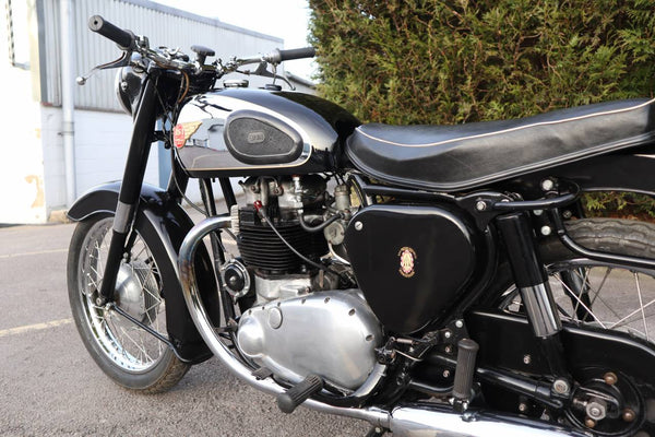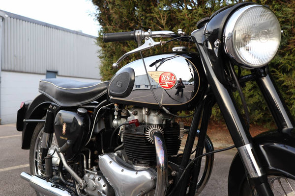 BSA A10 Gold Flash 1955 650cc in goede staat. Dit is het meer gewenste swingingarm -model, met hubs met volledige breedte. Belasting- en mot vrijgesteld en zijn waardevolle behouden; Origineel; Overdraagbaar nummer. Loopt en begint goed. Een geweldige investering!