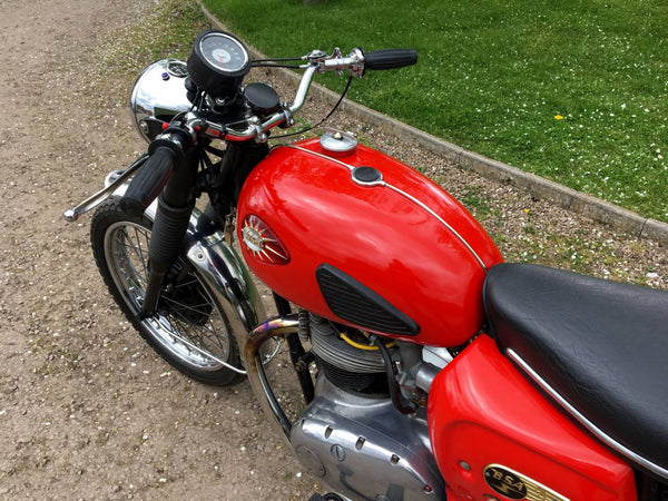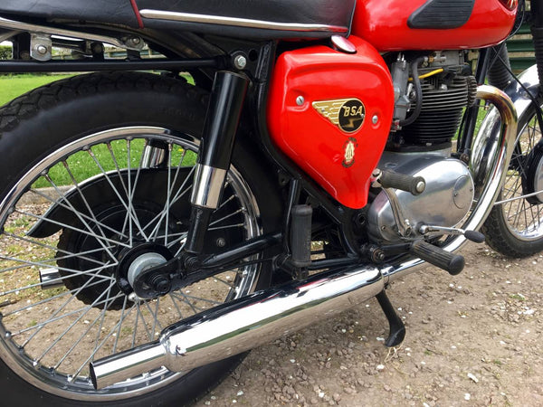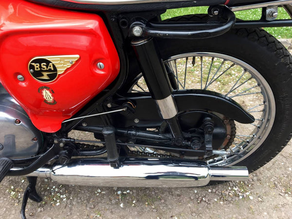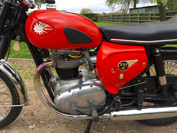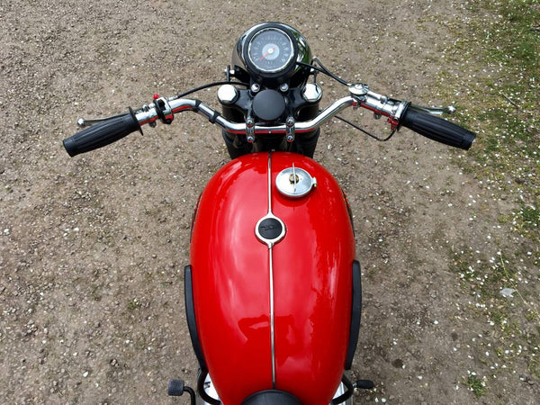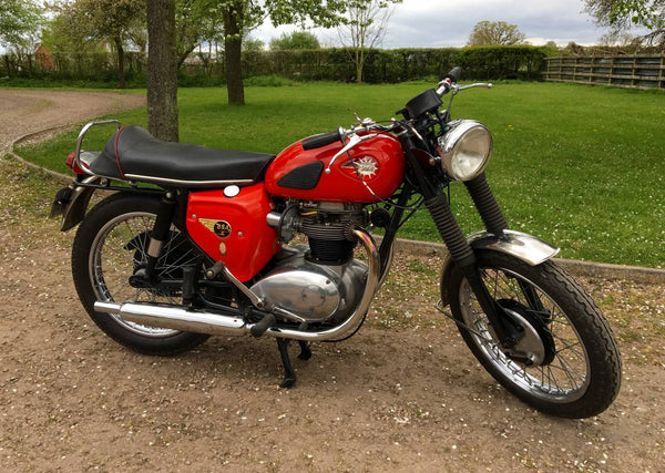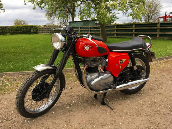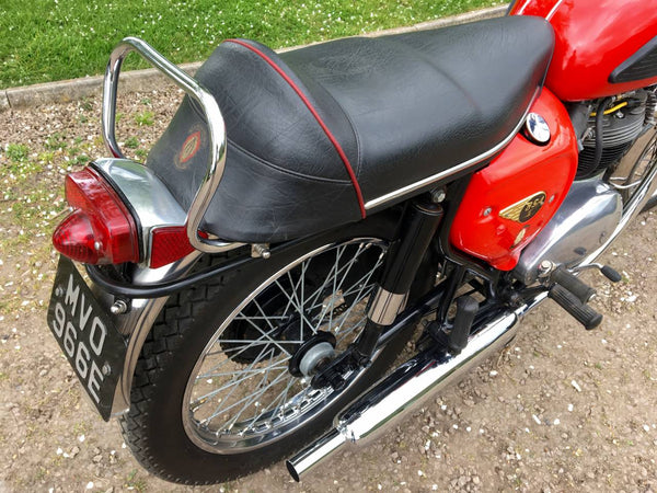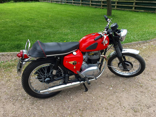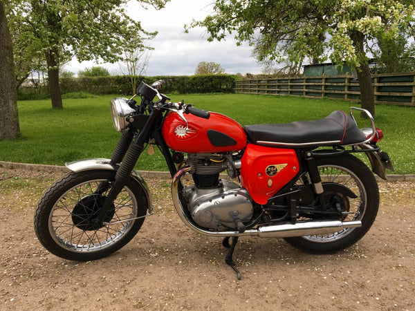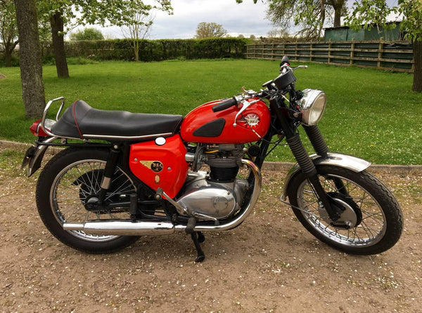 BSA A 65 T'Bolt 1967, zeer aantrekkelijk in zijn rode kleurenschema. Bijpassende nummers, nieuw herbouwmotor met behulp van vele SRM -onderdelen (met bonnen), waaronder een hoge outputoliepomp. Uitgestuurd met Lightning Twin Carb Head, met nieuwe koolhydraten. Begint de eerste trap, met een sterke, zoete motor. MOTD, zonder adviezen en belasting vrijgesteld. Een krachtige 650, die goed gesorteerd is en een goede prijs -kwaliteitverhouding is. Geweldige ritten fiets en een goede investering.