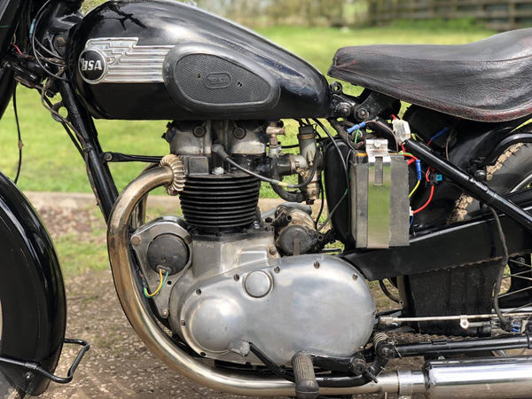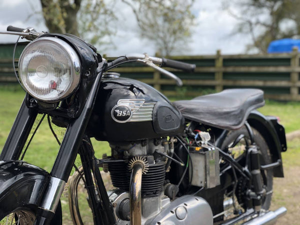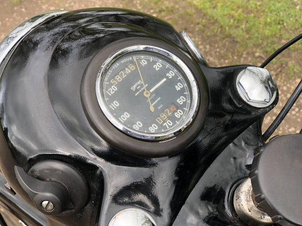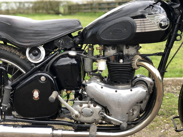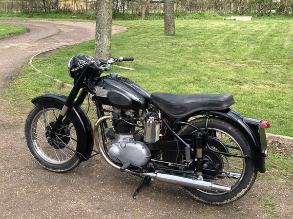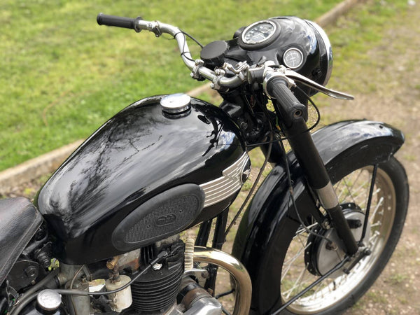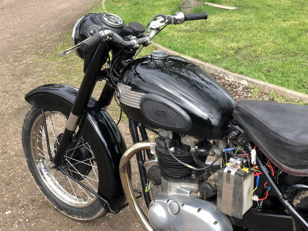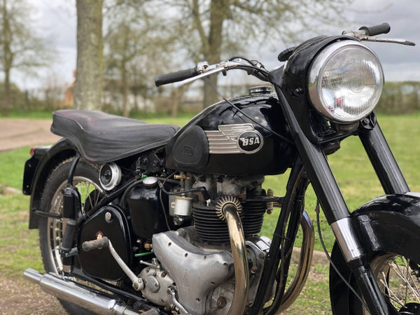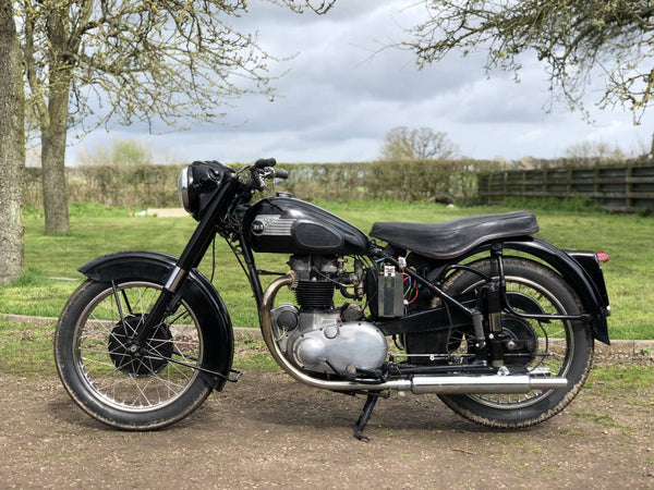 BSA A7 I953 500cc Deze A7 -plunjer, werd gekocht door de laatste eigenaar van een overleden landgoed in onaangeroerde oorspronkelijke staat. Hij herstelde het vervolgens, waar nodig, waardoor het als origineel achterblijft als