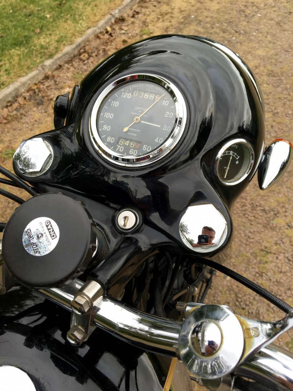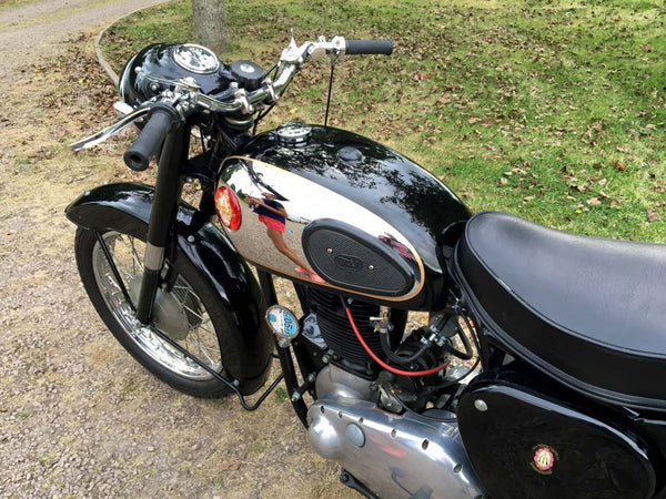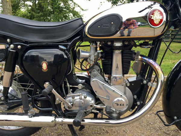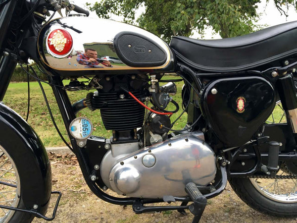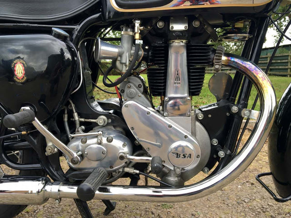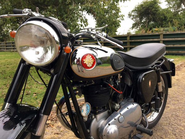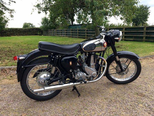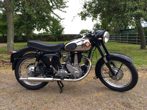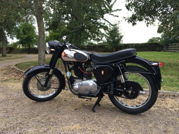 BSA B31 1957 350 cc in Chrome en Black Well Restaureerd enkele jaren geleden overal en opgewaardeerd naar 12 volt Electrics. Begint gemakkelijk en loopt heel lief. Wordt geleverd met Green Log Book V5C en is belasting en MOOD vrijgesteld. Is ook opgewaardeerd met nuttige indicatoren.