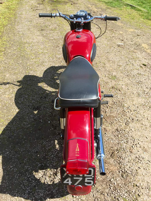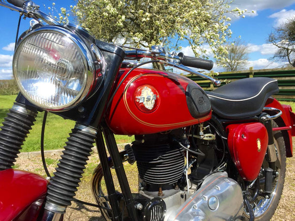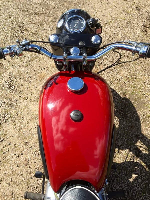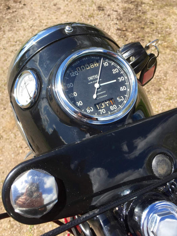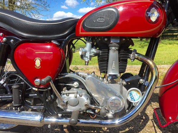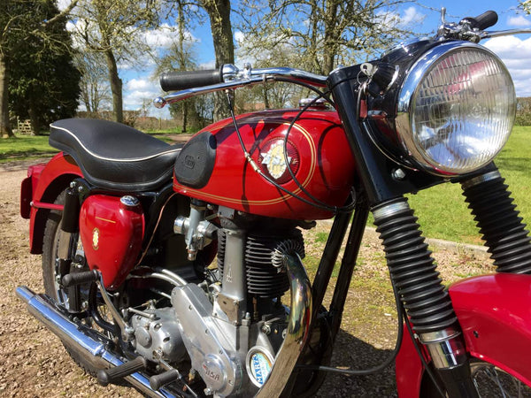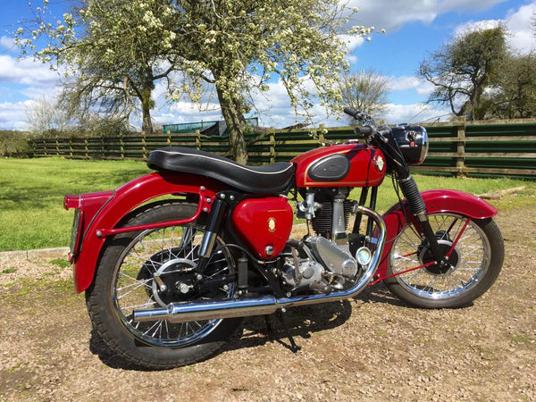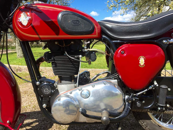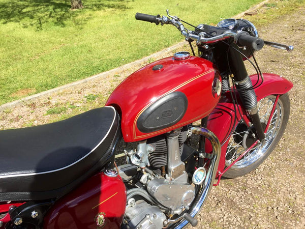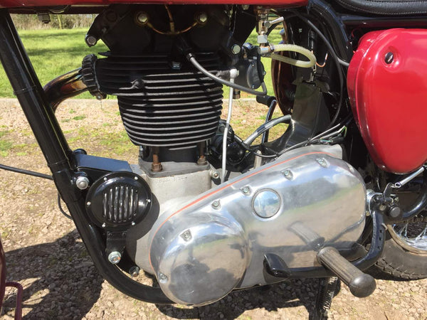 BSA B31 1959 350cc. De laatste enthousiasteigenaar heeft alle mechanische onderdelen doorlopen en waar nodig vernieuwd en hersteld en opnieuw geverfd en opnieuw geverfd. Het begint heel gemakkelijk met de eerste veeg van de kickstart en tikt met een langzame gestage beat, zelfs van kou. Het rijdt ook heel goed met alles wat werkt zoals het zou moeten met een bijna stille motormachines van elk mechanisch geluid. Als je op zoek bent naar een mooie goed gesorteerde B31, is deze echt een kijkje waard.