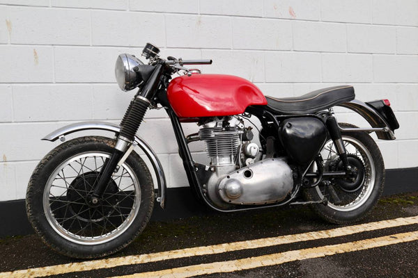 BSA B33 1950's 500cc. Dit voorbeeld heeft een beetje TLC nodig en heeft steegranden en chromen bewakers, Chrome Headlamp, zoals je op de foto's kunt zien. De aandrijfketen ontbreekt, net als de vulstandkap. Liep voordat de restauratie werd gestart. Een waardeproject waard. Geen papierwerk.