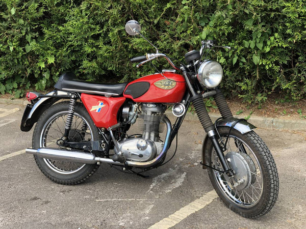 BSA B44 SS Shooting Star 1968. Deze mooie schietster is een behoorlijk gewilde model met weinig te koop. Het ziet er mooi en helder uit in rood met chromen bewakers en velgen en begint gemakkelijk te tikken en rijdt heel goed. Lijkt extreem origineel. Al met al een zeer aantrekkelijk voorbeeld dat klaar is om te gaan.