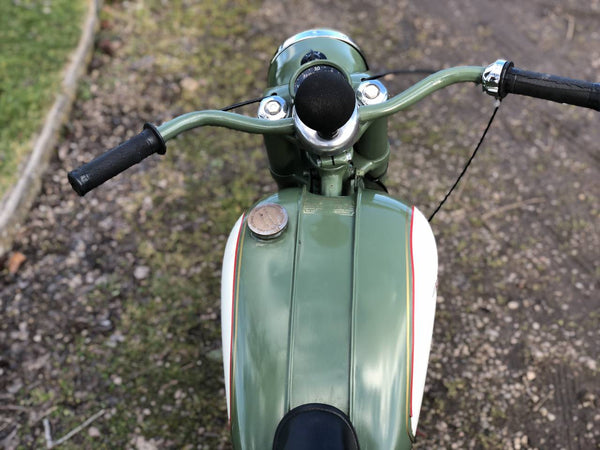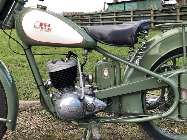 BSA BANTAM D1 125 CC 1956. In mooie staat en in het juiste kleurenschema, werd een tijdje terug naar een goede standaard gerestaureerd, heeft alleen het bedraden van lichten nodig (een eenvoudige, eenvoudige klus) of vertrek zoals uw geen "nacht Rijder " ! Begint gemakkelijk en loopt en reveert zoet; Tikt over een traktatie; Rijdt ook heel goed. Momenteel niet geregistreerd, omdat het oude logboek niet is ingeleverd toen Swansea werd geautomatiseerd!
