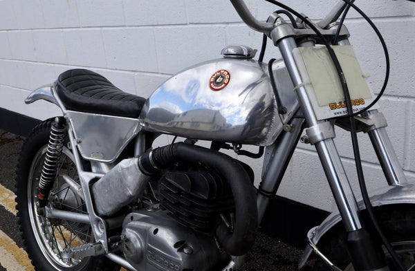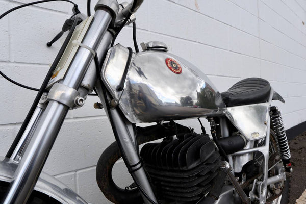 1972/3 Bultaco Sherpa T350 Trails Bike. In zeer goede originele staat met aantrekkelijke Allie Homerlite Body Kit en Allie -velgen. Loopt en rijdt heel goed. Niet geregistreerd, maar kan van het framummer worden gedaan. Veel plezier en een goede investering!