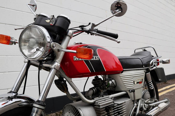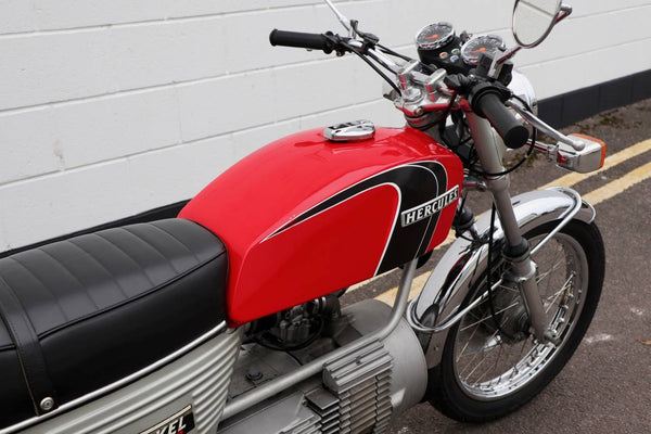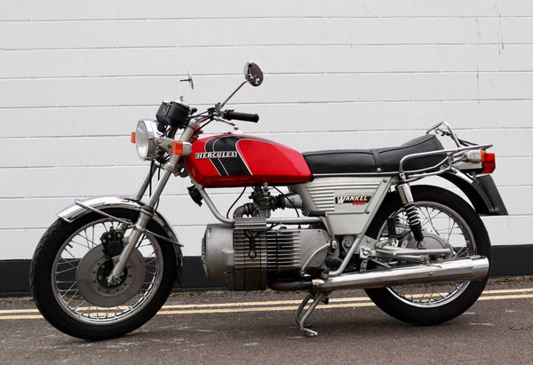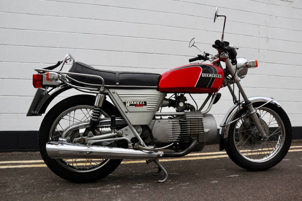 1974 Hercules W2000 294CC Rotary. Het lijkt in goede oorspronkelijke staat te zijn met slechts 26279 km op de klok. VK geregistreerd bij V5C -logboek. Wordt geleverd met een goed bestand met geschiedenis en enkele reserveonderdelen. Dit is een zeer zeldzame motorfiets die klaar is om te rijden en te genieten!